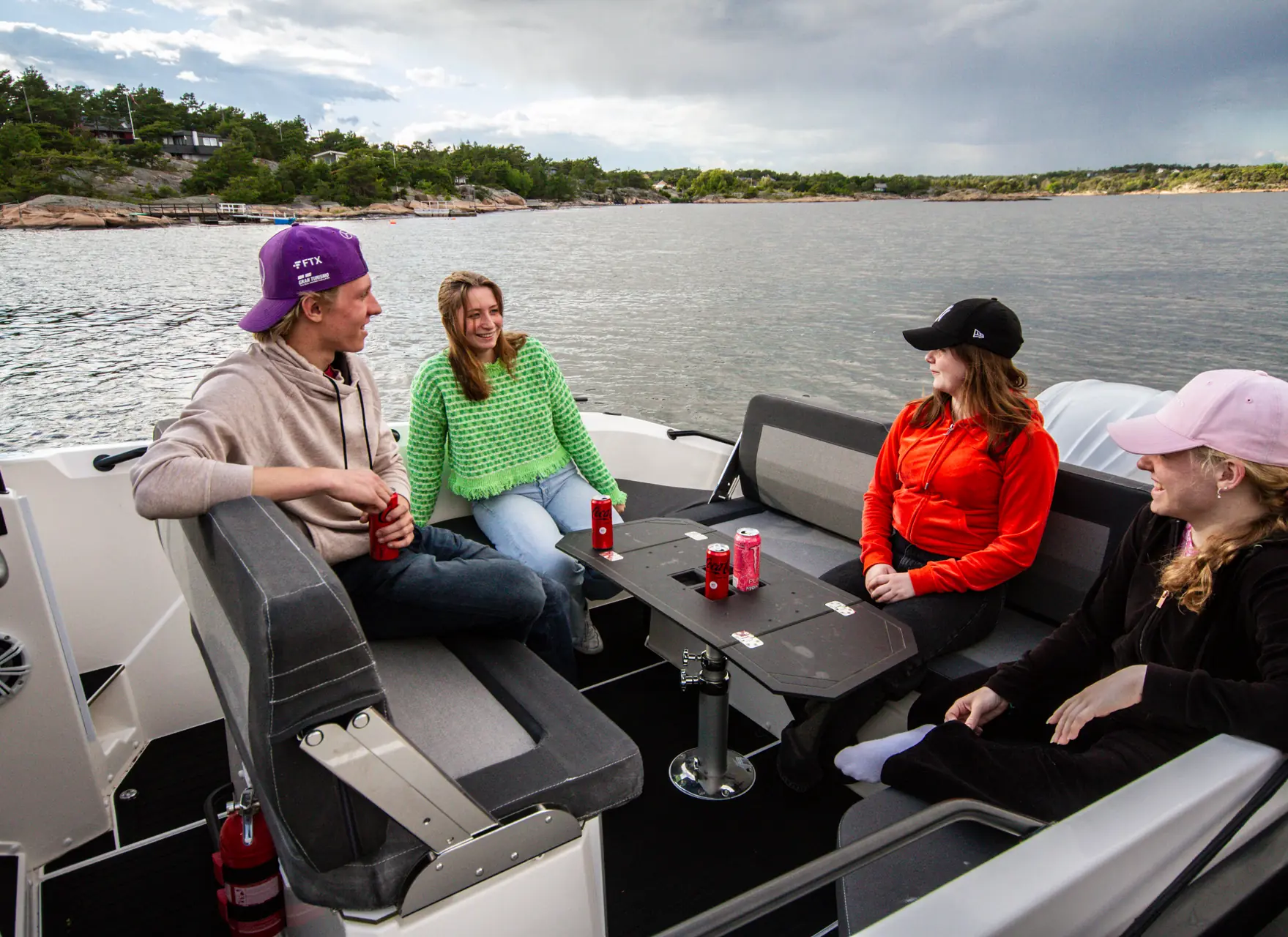 Takket være det store fordekket får du en populær solseng med de samme putene som brukes i lugaren, i tillegg til en nakkepute som festes i selve konsollen. Foran i baugen kan du også oppbevare tauverk, fendere og en liten dregg i eget stuverom. Bak vindskjermen får to-tre personer plass i en enkel sofabenk. Sikten forover og akterover er god gjennom hele fartsregisteret, men vi skulle ønske oss noen form for sidestøtte. Riktignok hadde det kanskje gått ut over en annen smart detalj – nemlig at seteryggen kan vippes slik at du får en sosial sittegruppe akter.
