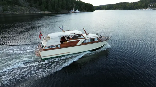 – Jeg trenger litt mengdetrening. Foreløpig er det tryggest at de mer erfarne fører båten i trange havner. Det er tross alt store verdier vi håndterer. Fort gjort å komme borti andre båter. Solveig vet hva hun driver med. Rutinert tar hun den store Targaen opp i plan. De kraftige Volvoene reagerer raskt. Her er det krefter.