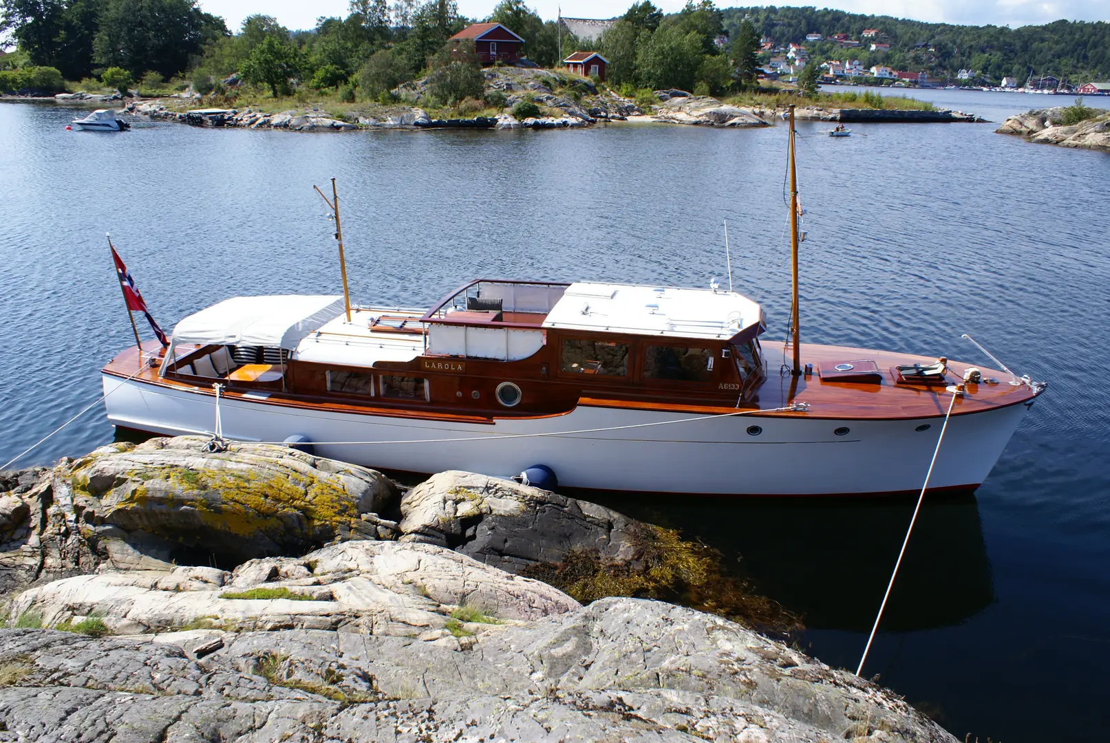 Larola er en herlig blanding av praktmøbel og lystbåt. Det oser kvalitet av båten som nå nærmer seg 100 år! Dette er en dame som har holdt seg sjeldent godt
