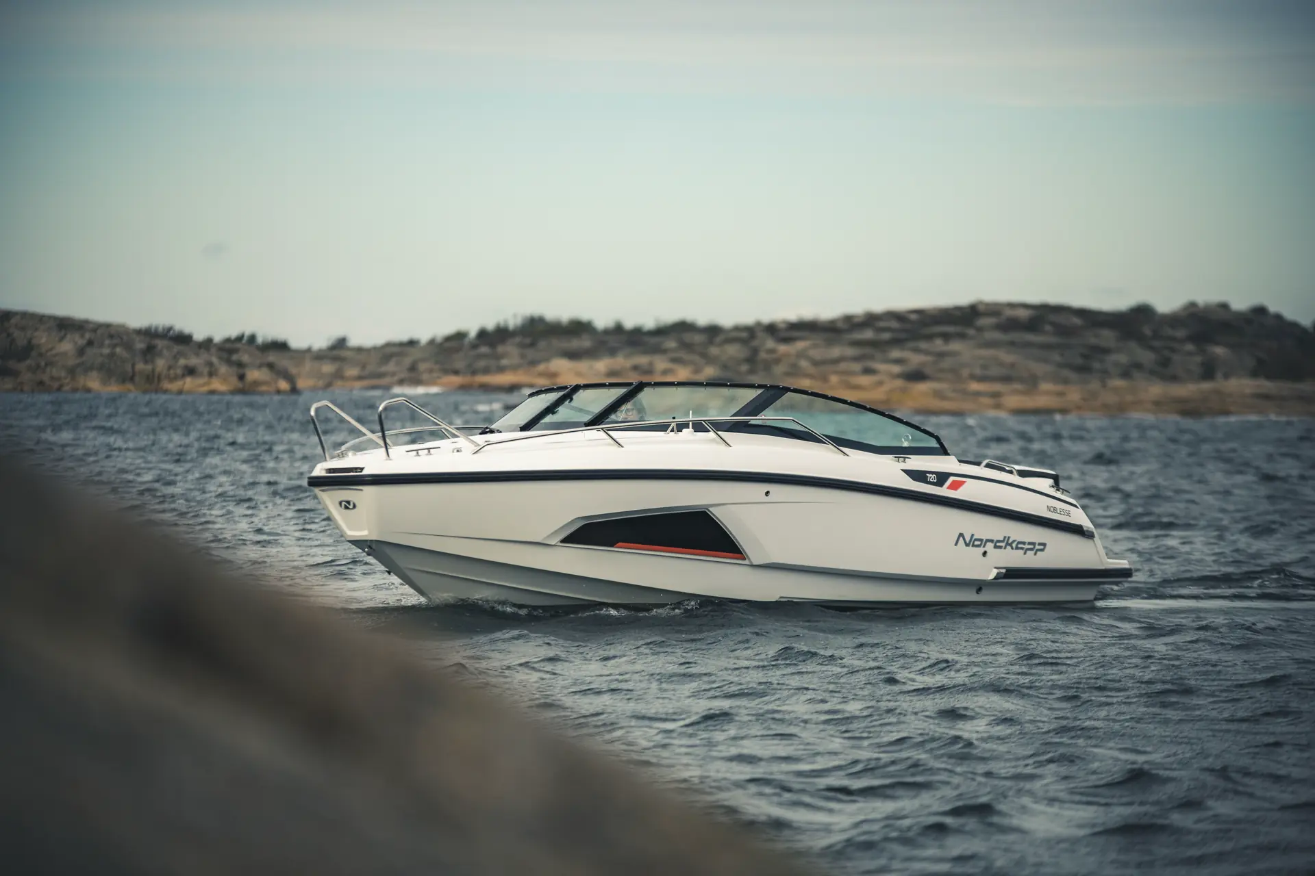 Innvendig oppleves Nordkapp Noblesse 720 som en trygg og familievennlig båt, mens utvendig er det sportslige linjer – og kjøreegenskaper. Vi har testet båten med største motoralternativ, en Evinrude G2 på 250 hestekrefter. Med den måler vi toppfart på imponerende 49 knop. En av de mest økonomiske fartsregistrene finner vi fra 29 knop med 29 liter i timen, til cirka 35 knop og et forbruk på 41 liter per time. Båten kan kjøres trygt og forutsigbart, men også utfordres. Fra førerposisjonen har du god oversikt over instrumentene med digitale motordata og 9” eller 12” kartplotter.