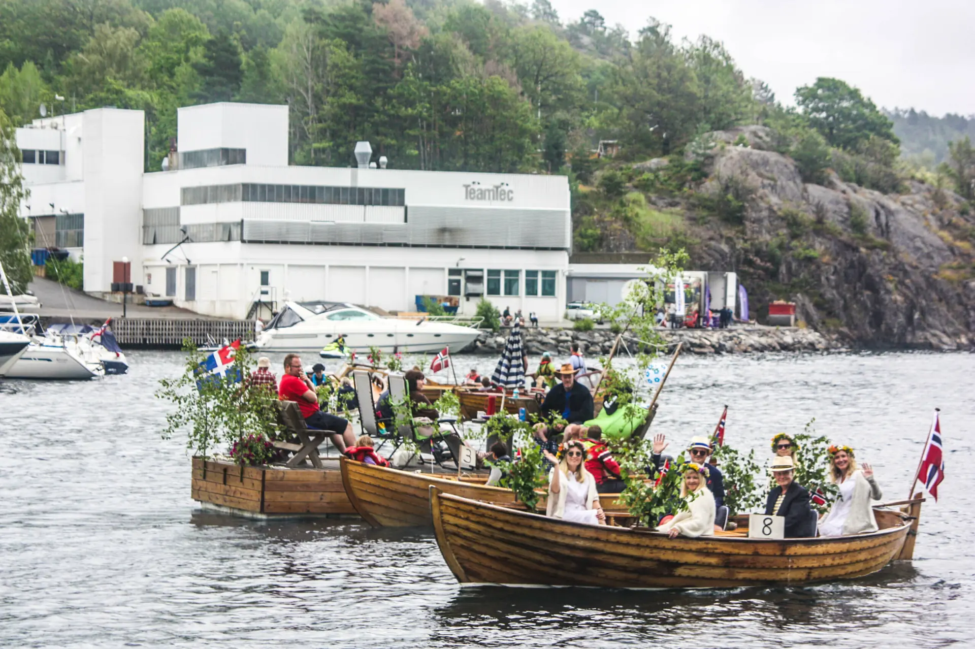 Men det hyggeligste ved hele regattaen er nok den såkalte veteranbåtklassen. I år hele 15 snekker med tidsriktig kledt mannskap. Og etpar mer humoristiske innslag. Rigattaen preget som før hele byen denne uken.