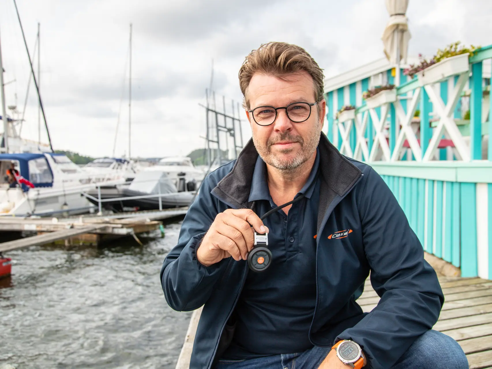 – Jeg vet hvor viktig det er å bruke dødmannsknappen. Særlig i høy fart er det livsfarlig å kjøre uten, noe vi har flere eksempler på. Jeg har CoastKey-enheten rundt halsen eller i beltet fra jeg går ut på brygga til jeg legger til igjen, og selvsagt er det jo også en gimmik å kunne starte båten før du går om bord. Skal du ty til den rød snora er det så fort gjort og enten stoppe motoren eller glemme å ta den på igjen fordi du skal ordne noe om bord, gå på do eller liknende, forteller Staff.