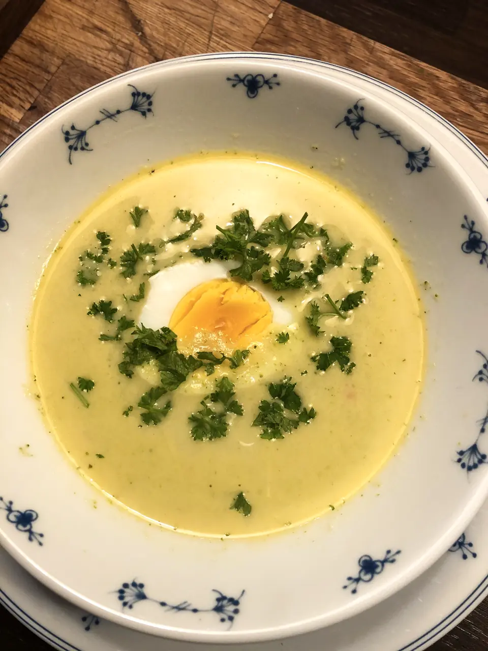 Her passer det med hardkokte egg ved servering. Og gjerne et urtedryss av persille eller timian.