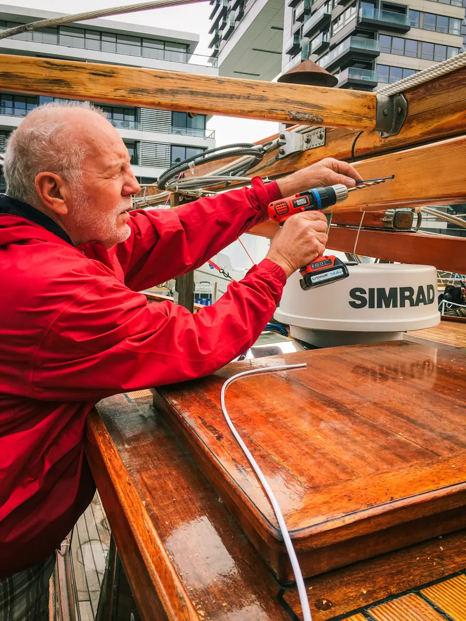 – Verona har hatt vinterhavn i Reinhavhafen i Køln. Havnen er godt beskyttet, men det kan komme sterke kastevinder fra øst-nordøst på vinteren. Det fikk båten kjenne på. Heldigvis var det gode naboer som lukket dør og luker. Ingen skader skjedd. Det så verre ut enn det var. Betjeningen på havnen er serviceinnstilt og hyggelige. Det er stor aktivitet av servicefolk på flere av båtene rundt oss. Flere eiere bor i båtene sine, spesielt i helgene. Mange kommer innom oss og slår av en prat. Ei dame fra en nabobåt kom bort til oss og sa: – very nice vikinship! Ikke mange norske båter her.