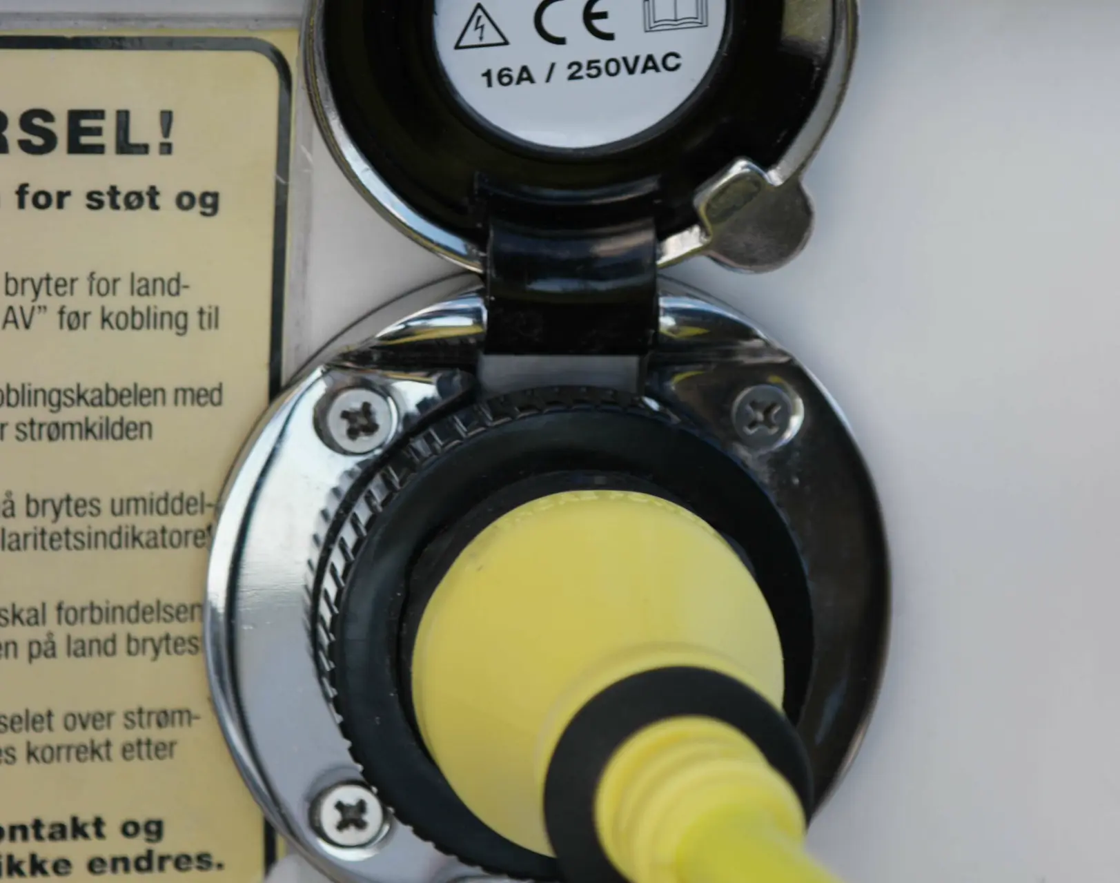 Vi valgte å skifte ut det gamle 220V-anlegget ombord med nytt fra Ratio. Her trenger vi ingen fagmann for å montere. Plugg&Play hele veien med sikre koblinger. Alt nytt fra landstrømkabelen til stikkontaktene om bord. En grunnpakke med dette produktet koster ca. 5.000 kroner og kan utvides med galvanisk skille og flere kontrakter.