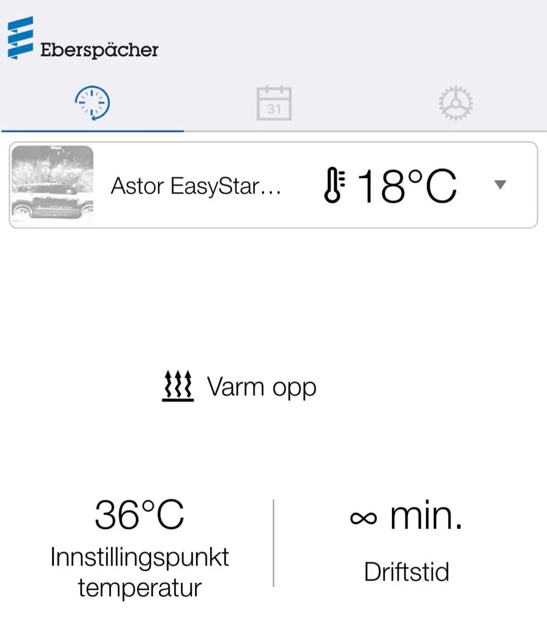 Vi har en Eberspächer-varmer ombord. Vi installerte for et par år siden EasyStart web. Det vil si en trådløs mottaker om bord som har et sim-kort installert hvor vi med denne appen kan starte og stoppe, sette temperatur og gangtid, slik at vi har en varm båt før vi går om bord. Denne har gitt oss glede i de to årene vi har hatt den montert. Terningkast 6! Flere produsenter har en slik fjernstarter.