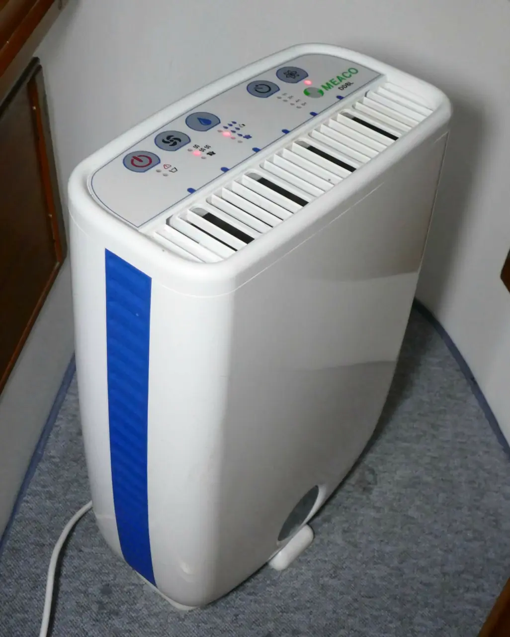 Maeco DD8L Junior er en luftavfukter vi har hatt i våre båter i flere år. Vi merker det spesielt på sengetøyet når denne er i bruk. Luftig og deilig. Vi har fra høst til våren også montert en liten pumpe som med flottørvakt starter utpumpingen av kondensvannet ut mot vasken. Pris for avfukteren er ca. 3.000 kroner. Pump-it-up-pumpen koster ca. 350 kroner.