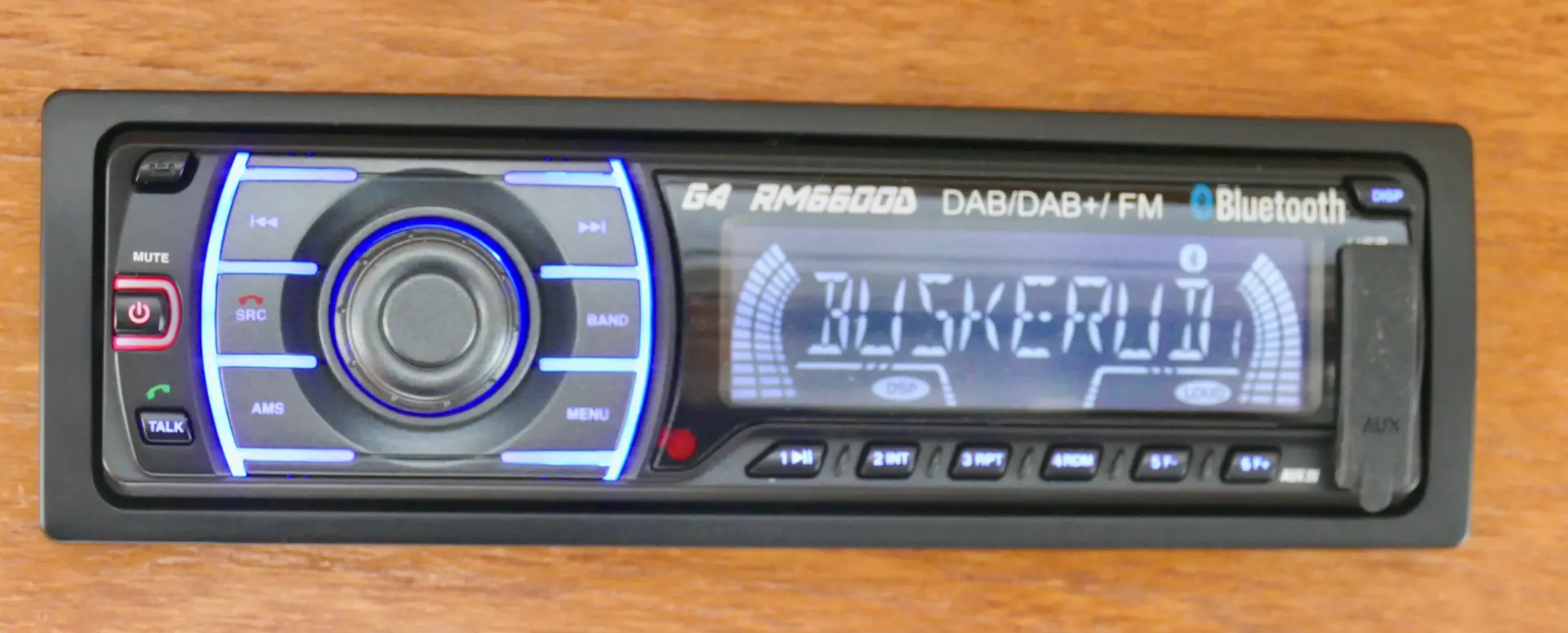 Den gamle FM-radioen er byttet ut for lengst mot DAB tilsluttet en god antenne fra Glomex. Det finnes mye rart på markedet av DAB-antenner. Radioen er på 4x40W og med et stort lettavlest panel. Pris for Gussi G4-RM6600D radio hos Seatronic er ca. 1.000 kroner.