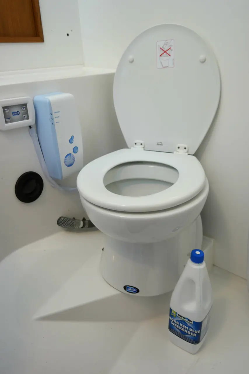 Joda, vi trives med Jabsco elektrisk og stor bolle. Panelet på veggen har flere innstillinger når det gjelder skylling og tømming av potten. Ingen problemer med denne så langt. Støymessig er den midt på treet. Deluxe elektrisk toalett med PAR-MAX 2.9 pumpe 12V. Leveres med to meget stillegående pumper, en membranpumpe for vanninntak (som kan plasseres hvor som helst), og en sentrifugalpumpe med kniv for uttak. Kan også leveres med magnetventil dersom du ønsker å koble toalettet til det eksisterende ferskvannssystemet. Pris kr. 7 999.-.