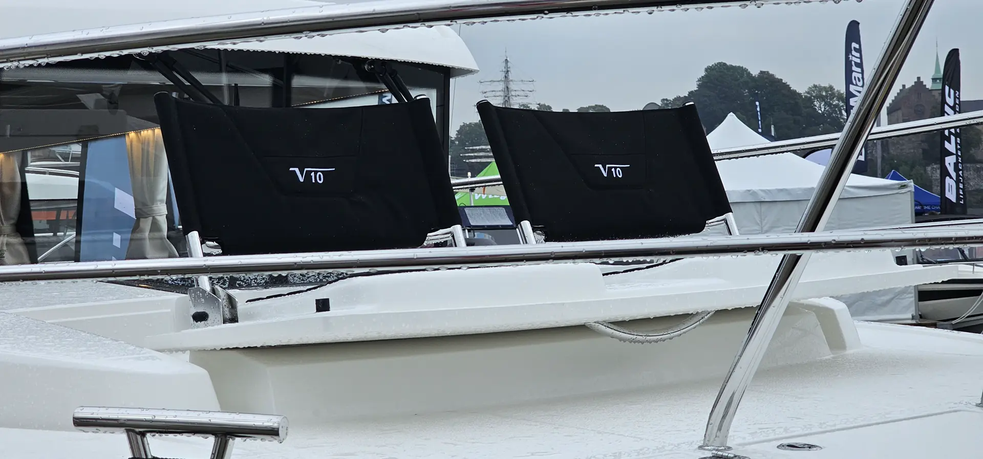Fremme i baug har de også en ny innovativ løsning, med 2 sittestoler som er integrert i baugen. Med ett enkelt håndgrep kan stolene åpnes eller lukkes ned igjen i dekket. Det samme gjelder for baugspyd med stige. Den taes enkelt frem og slåes sammen igjen, i en luke i baugen.