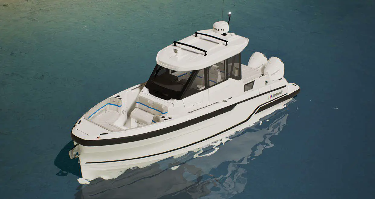 Skroget er utviklet i samarbeid med finske Navia, kjent for steppede skrog. Ifølge produsenten skal dette gi raskere akselerasjon, tørrere gange og bedre sjøegenskaper under krevende forhold. Båtene kan leveres med enkel eller dobbel påhengsmotor, og toppfarten oppgis til litt over 50 knop.