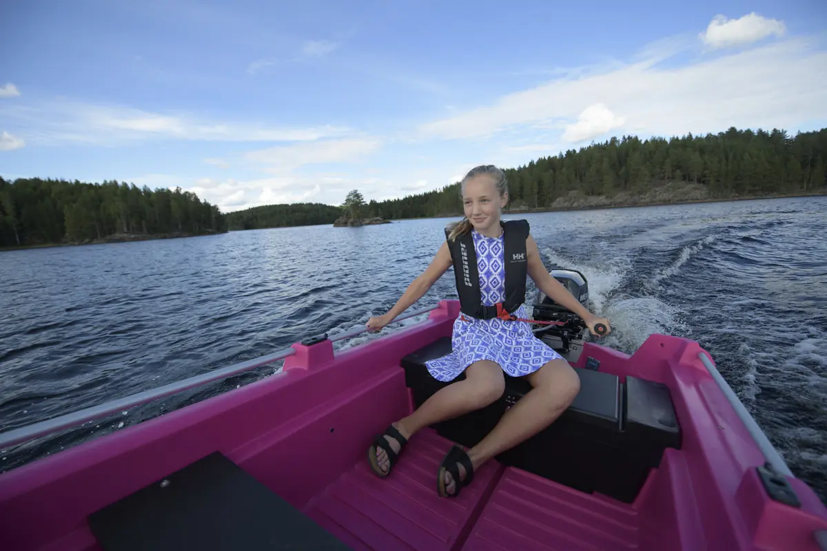Modellen er selvlastende, har stor lastekapasitet og utmerkede kjøreegenskaper med en 9,9/15 hk motor. Aluminiumsrekkverk er standard og i hekken er det et stort, låsbart oppbevaringsrom for tanker og annet utstyr.