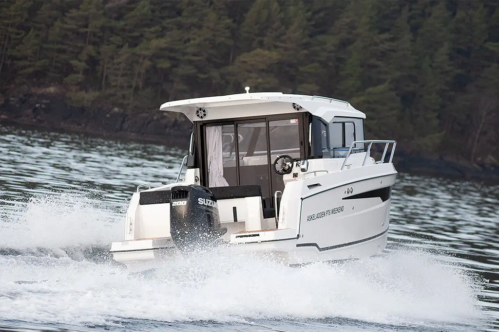 Denne båten er optimalisert for Suzukis DF200 APX. Motoren har plenty med krefter, gir båten et fartspotensiale på 40 knop og leverer uslåelig forbruksøkonomi!