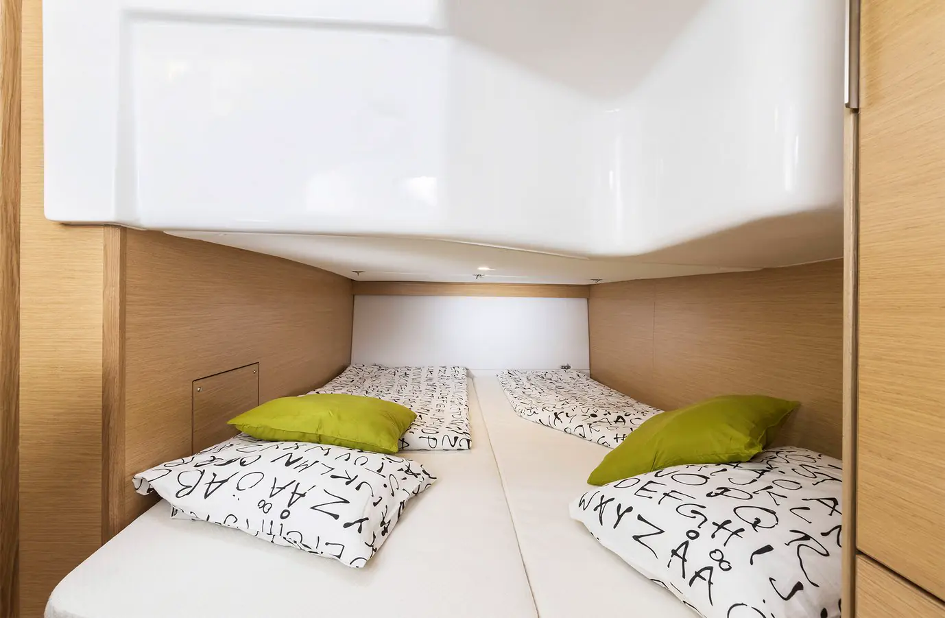 Legg merke til dimensjoner på kryssholt og andre tekniske installasjoner, her er det ikke spart på noe. Utstyret ombord i en Bavaria kjennetegnes ved at det kommer fra de ledende leverandørene innenfor hvert sitt felt: Sleipner baugpropeller, Webasto varmere, Garmin og Simrad navigasjonsutstyr, Fusion Marine stereo, Dometic kjøleskap, Quick ankervinsjer, Jabsco sanitær, Würth elektronikk, Lewmar luker, Büfa gelcoat, Nauti Sattler kalesjer, Volvo Penta og Mercury motorer mm.