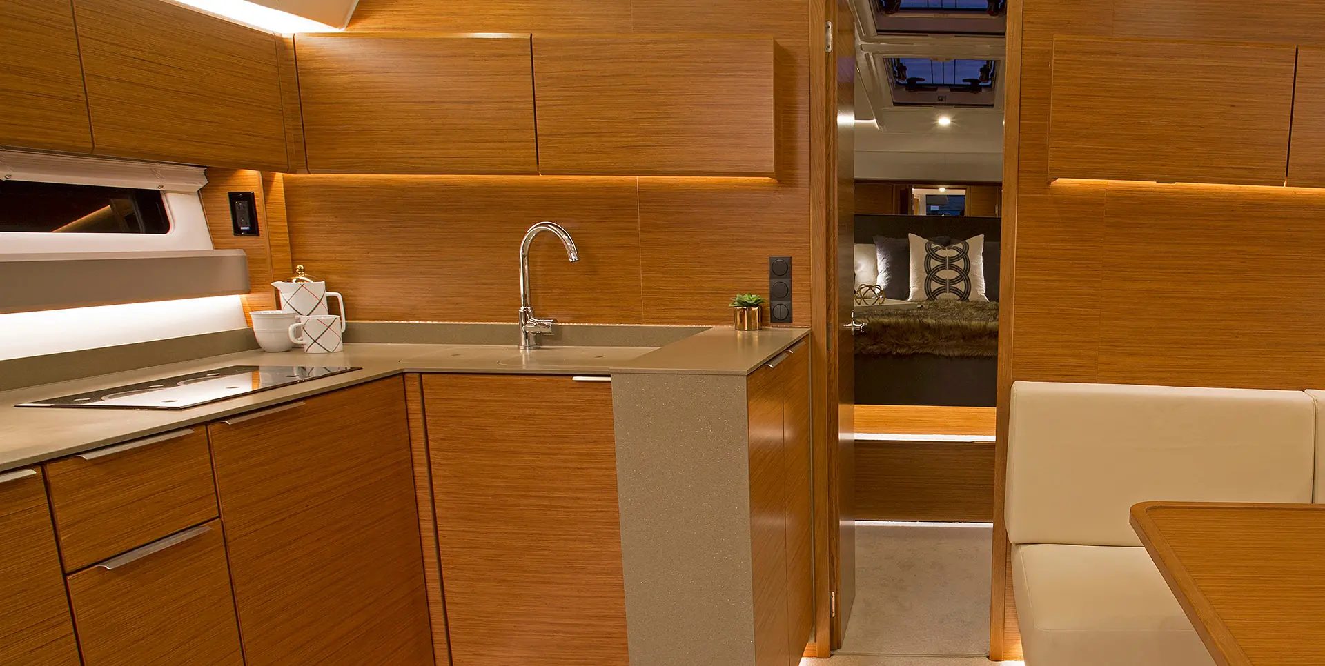 En tysk kvalitetsbåt med fantastisk layout, topp komfort og svært gode sjøegenskaper. Markedets desidert største 45 foter (14,99m lang og 4,41m bred) tilbyr 3 romslige lukkede lugarer, eget bad og separat dusj i eierlugaren, stort gjestebad og dusj med inngang fra den sosiale salongen og et velutstyrt kjøkken. Det er full ståhøyde gjennomgående i hele båten og innredningen er svært praktisk med mye skapplass og masse stuverom. Denne båten kan familie og venner bo i over lang tid.