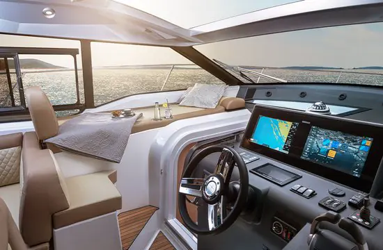 Vi har testet båten i Oslofjorden og kan forsikre om glimrende sjøegenskaper. Båten har en myk gange i sjøen og er fantastisk å kjøre både ved sakte cruising og i full fart. Noe av det beste vi har prøvd. Bavaria's velkjente store front- og sidevinduer gir perfekt utsyn for fører og passasjerer. SR38 HT leveres med et stort elektrisk skyvetak i dobbel tekstil. Det gjør det svært enkelt å slippe inn sol og frisk luft, perfekt for skiftende norsk vær.