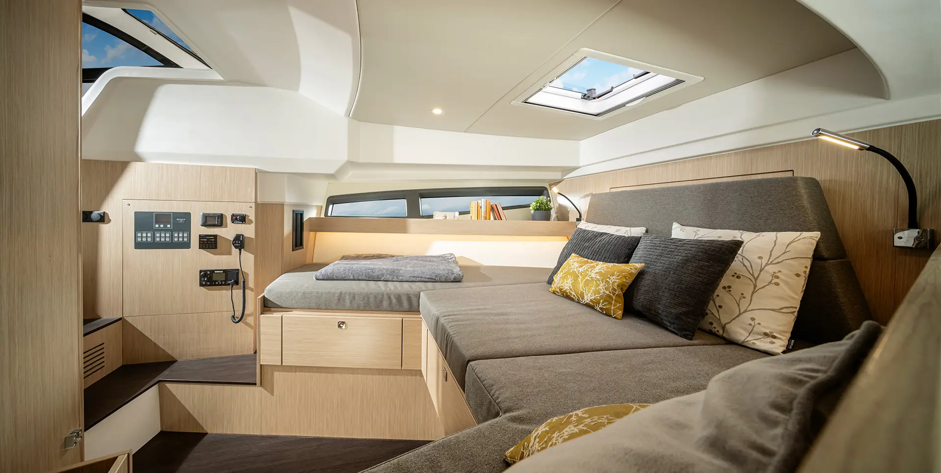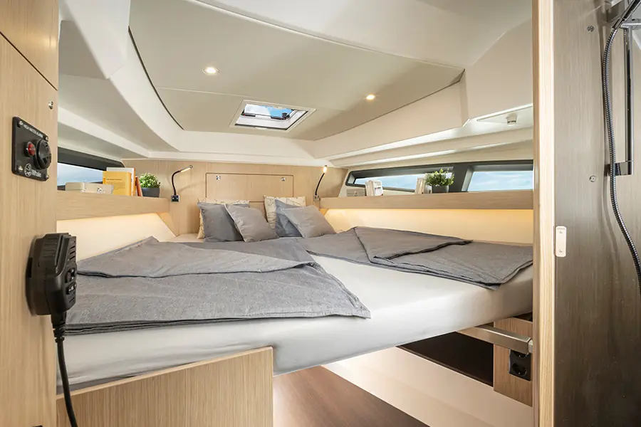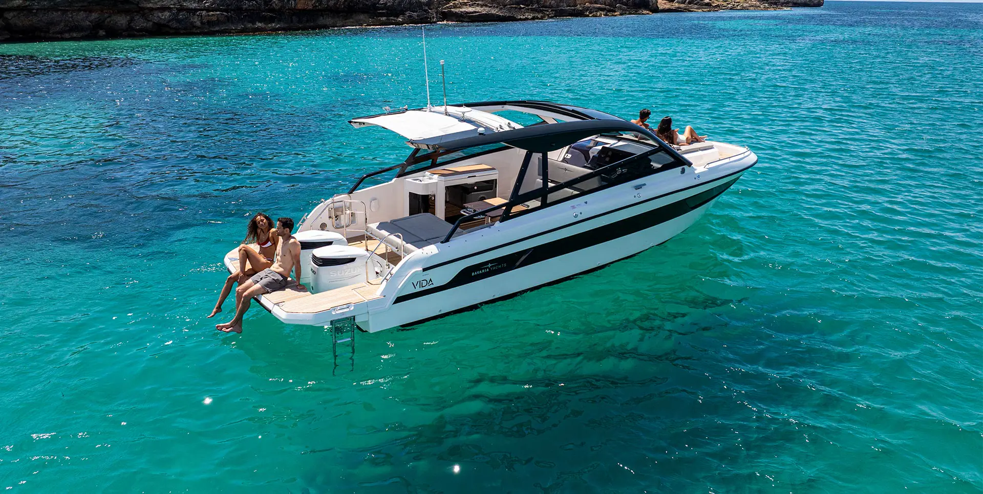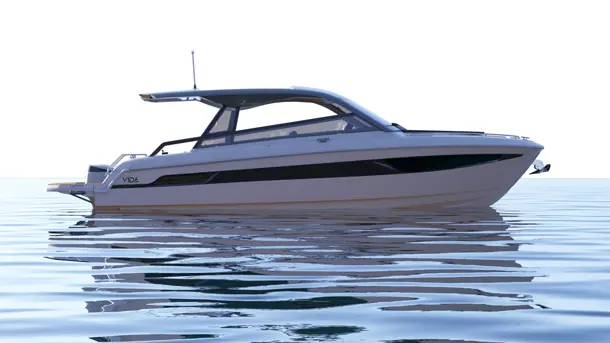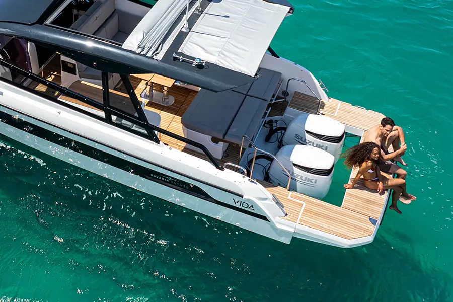 Nye BAVARIA VIDA 33 er en stor daycruiser med masse plass og komfort, hvor hovedfokus er en kjempestor cockpit for et herlig sosialt båtliv. I tillegg er det lugar under dekk med soveplasser og et eget romslig bad. Fordekket kan leveres med solseng eller sittegruppe, og båten kan til og med leveres med senkbar badeplattform. Gjør deg klar til mye moro på vannet!