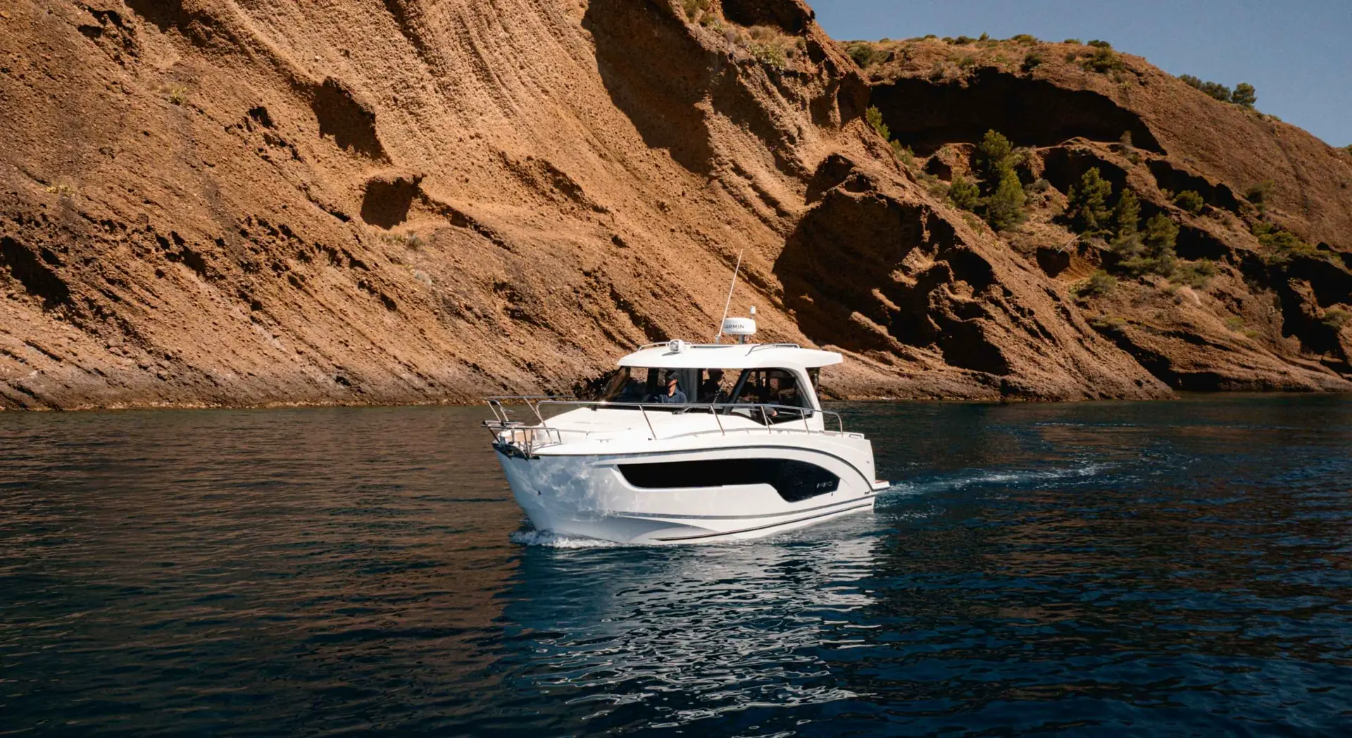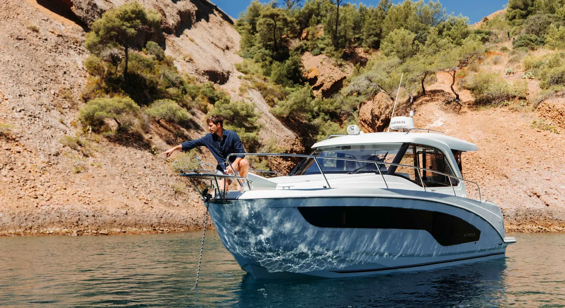 Beneteau’s Antaresbåter gir familien en lukket båt med masse plass og komfort. Innvendig har den en ”skandinavisk” løsning med salong og førerplass oppe i styrehuset. Her er det masse lys og luft. Store skyvevinduer og takluke sørger for god gjennomlufting på varme dager. Fremme under dekk er det soveavdeling. Akterdekket er ideelt for fiske eller andre aktiviteter.