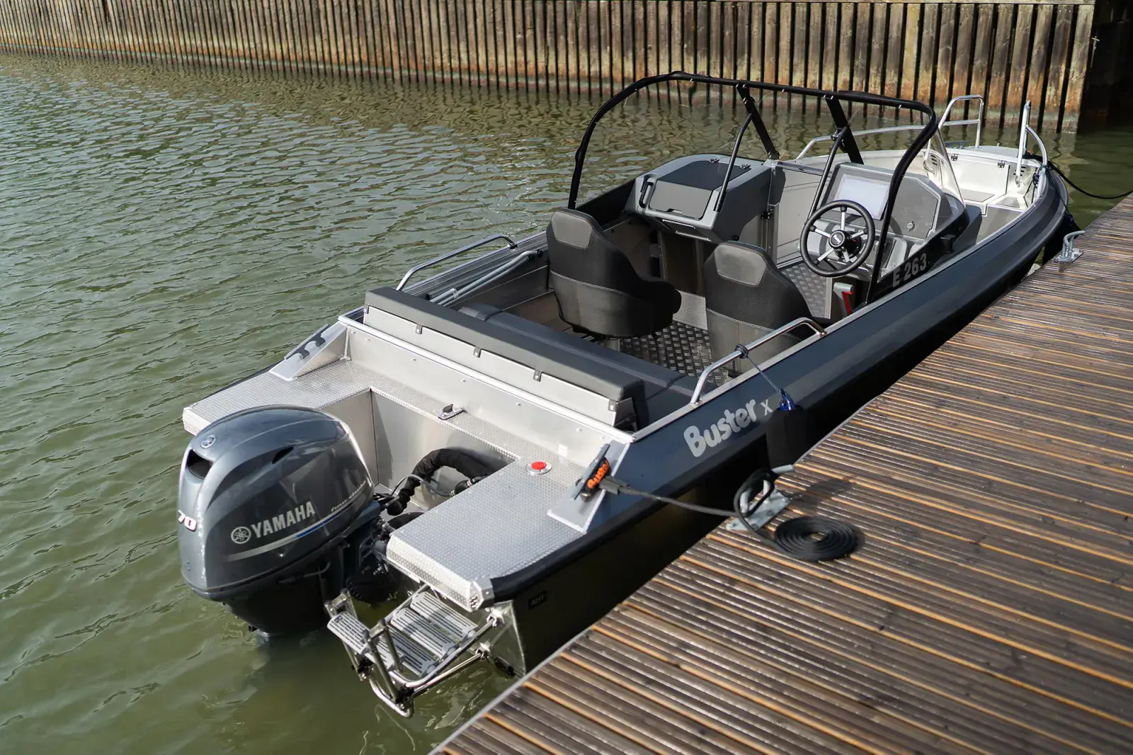 Buster X er den perfekte båten for alle dem som verdsetter et aktivt og mangesidig båtliv. En stor, slett dørk gjør det enkelt å bevege seg om bord og finne fiskemuligheter til mange. Et skrog med gode sjøegenskaper tar deg og fiskekompisene dine raskt frem til avsidesliggende fiskeplasser. Fast bensintank som rommer 100 liter gjør at du ikke trenger å bekymre deg om rekkevidden.