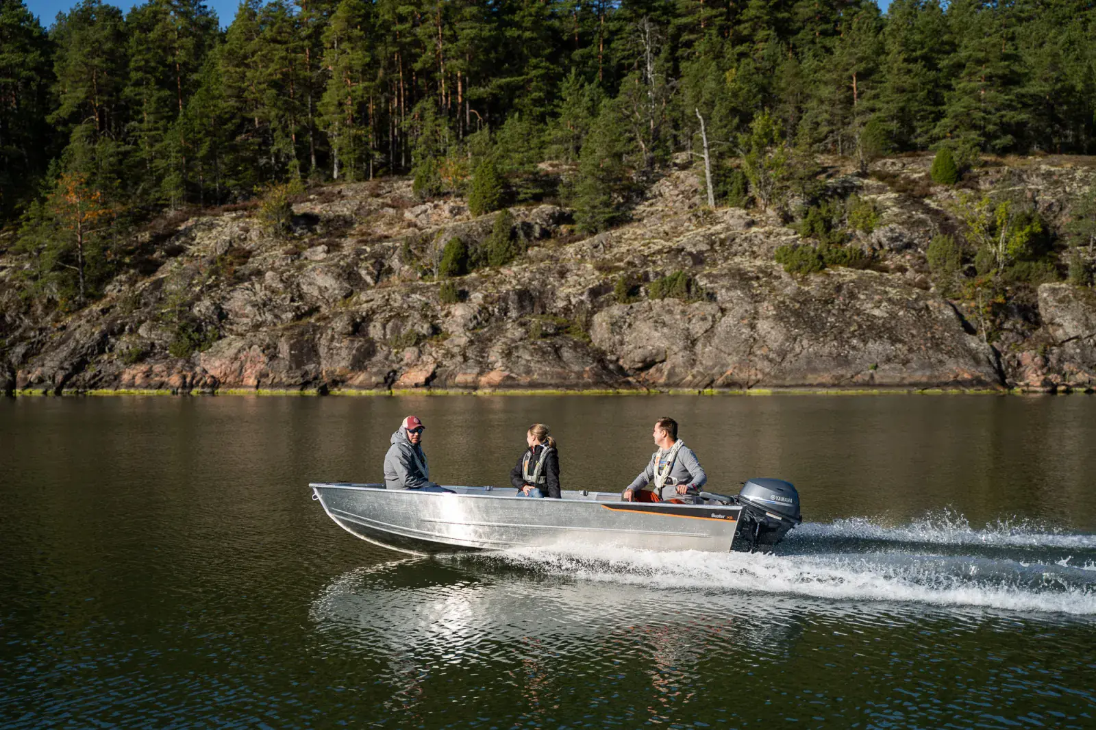 Buster XS er en båt som passer for hele familien. Den allsidige båten er enkel å håndtere og blant de aller beste i sin vekt- og størrelseskategori. Buster XS er den perfekte båten til landstedet eller som en pålitelig hjelper til fritidsfisket. Båten føres fra den U-formede sittebenken akter. Dette gir en perfekt ergonomisk førerposisjon da det ikke gjør noen forskjell hvilken side du foretrekker å sitte på. Båten er stabil og behagelig å kjøre, takket være den brede vannlinjen og det nøye designede V-formede skroget. Yamaha F20GWHL er det anbefalte motorvalget til denne båten. Motoren responderer godt og gjør båten svært enkel å håndtere og båten planer lett.