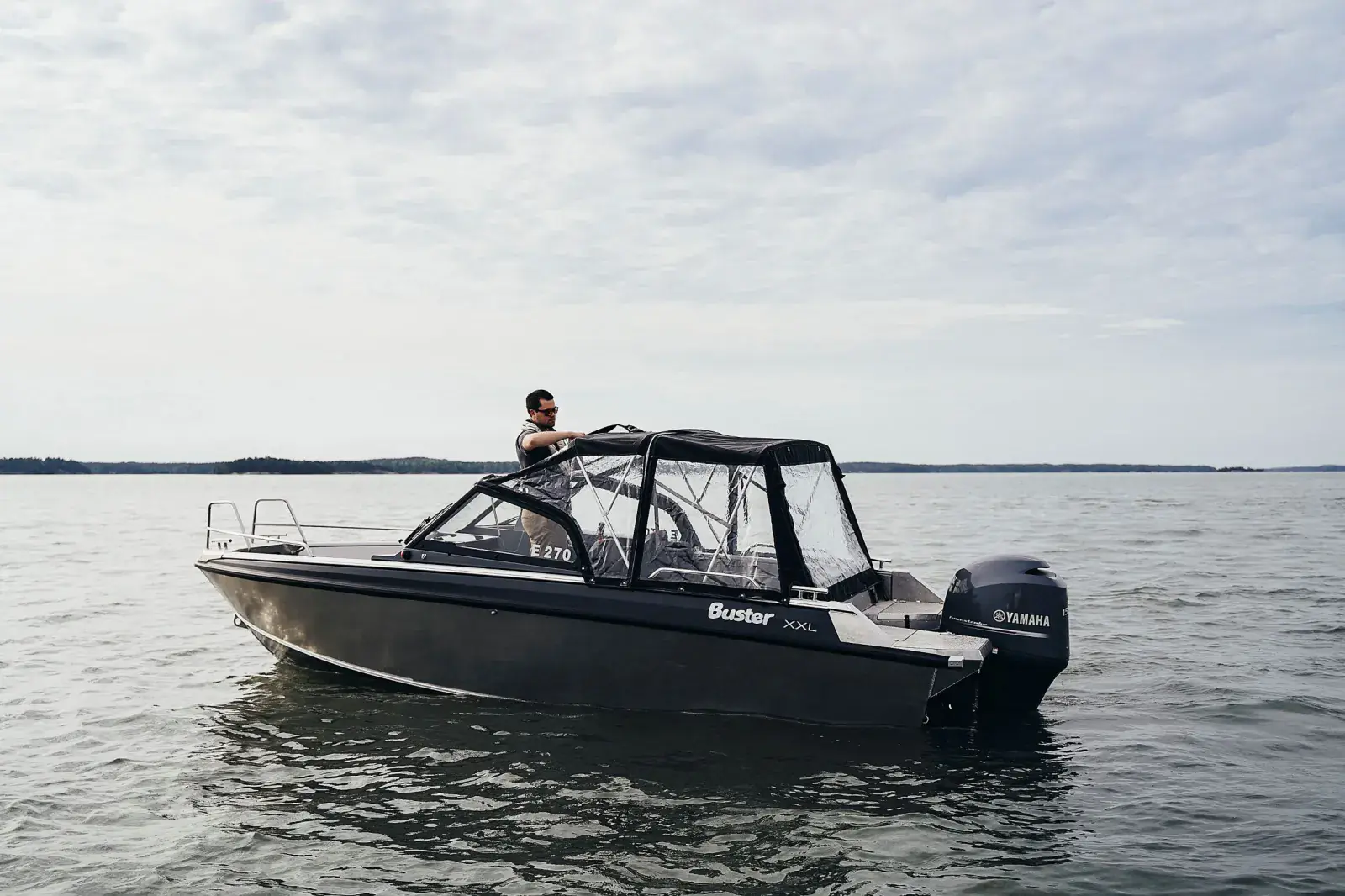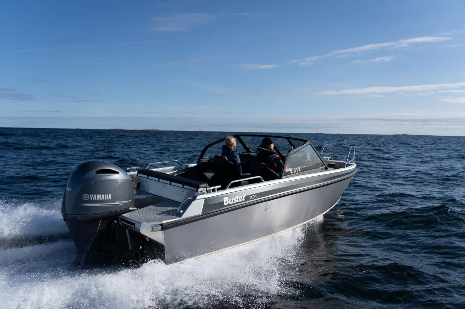 De moderne, sporty linjene i skroggeometrien til Buster XXL røper at den er i slekt med Magnum, det samme gjør hastigheten og kraften. Når du trykker på gassen vil Buster XXL bringe sin last mykt og raskt også over grovere sjø. Styrekomforten til Buster XXL merkes umiddelbart når du setter deg ned i førersetet. Et solid, justerbart sete, myk albuestøtte ved siden av fjernkontrollen, og den nøyaktige hydrauliske styringen garanterer en førsteklasses styreopplevelse i alle hastigheter. Forutsigbarhet og stabilitet med smidig manøvrerbarhet gjør at Buster XXL føles mye større enn den faktisk er.