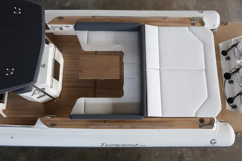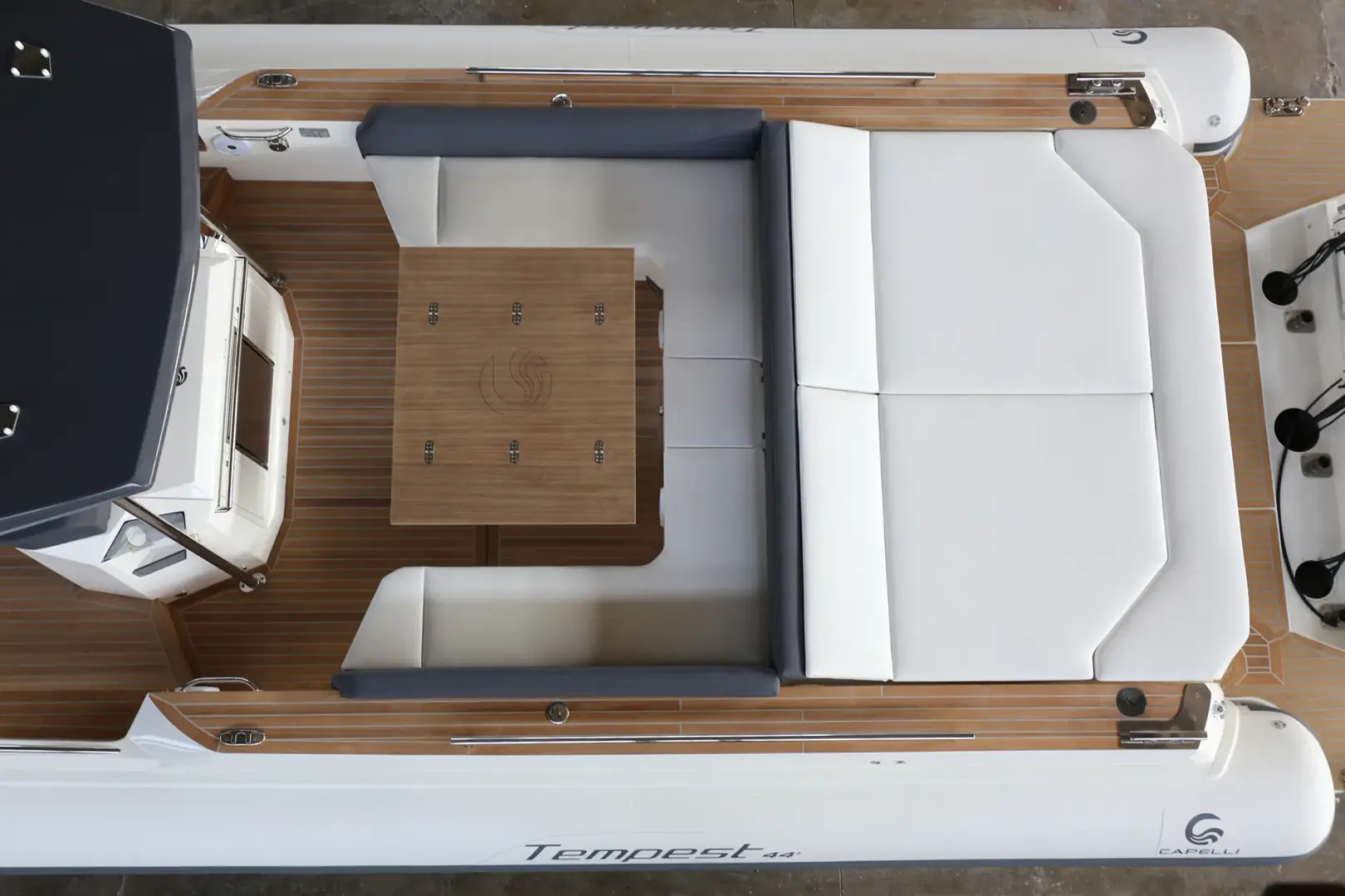 Tempest 44 er en rib som utstråler luksus og tiltrekker seg oppmerksomhet. Kabinen tilbyr romslig ståhøyde, et velutstyrt kjøkken, dinette/dobbelseng og soveplasser. Toalettet har elegant design. Store utearealer med rikelig plass til sosiale sammenkomster og soling gir trivsel. Dypt V-bunnsskrog skaper gode sjøegenskaper, og 3 x 300 Hk motorer kan gi toppfart på nær 50 knop.