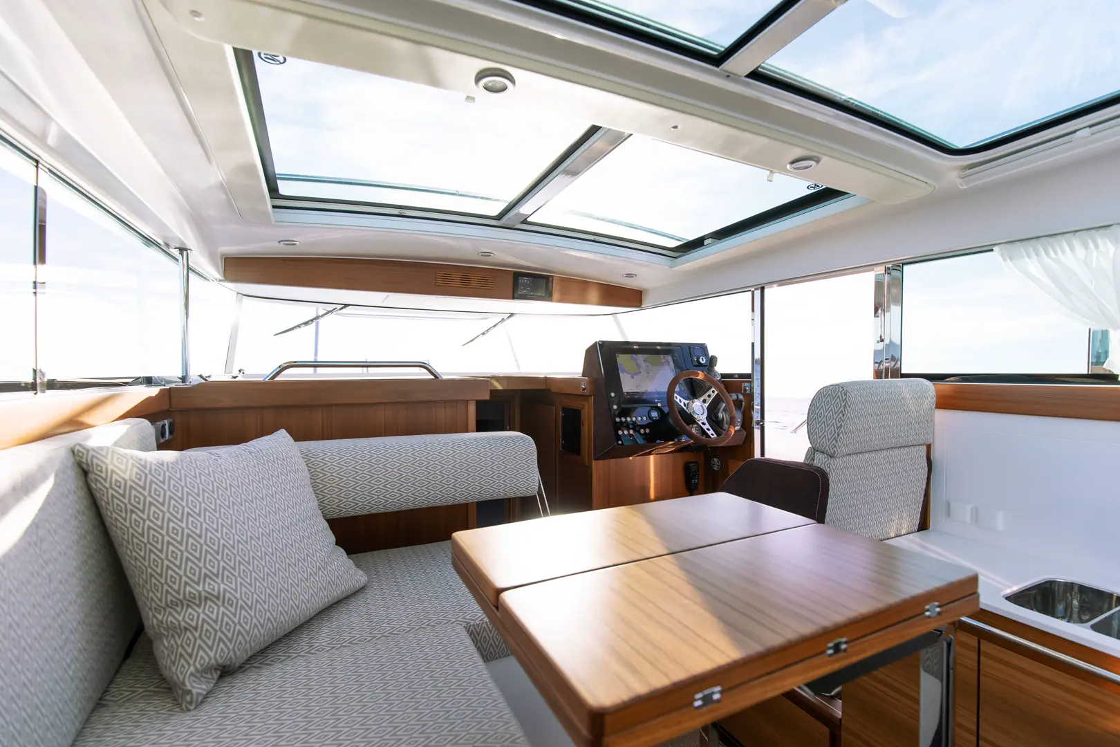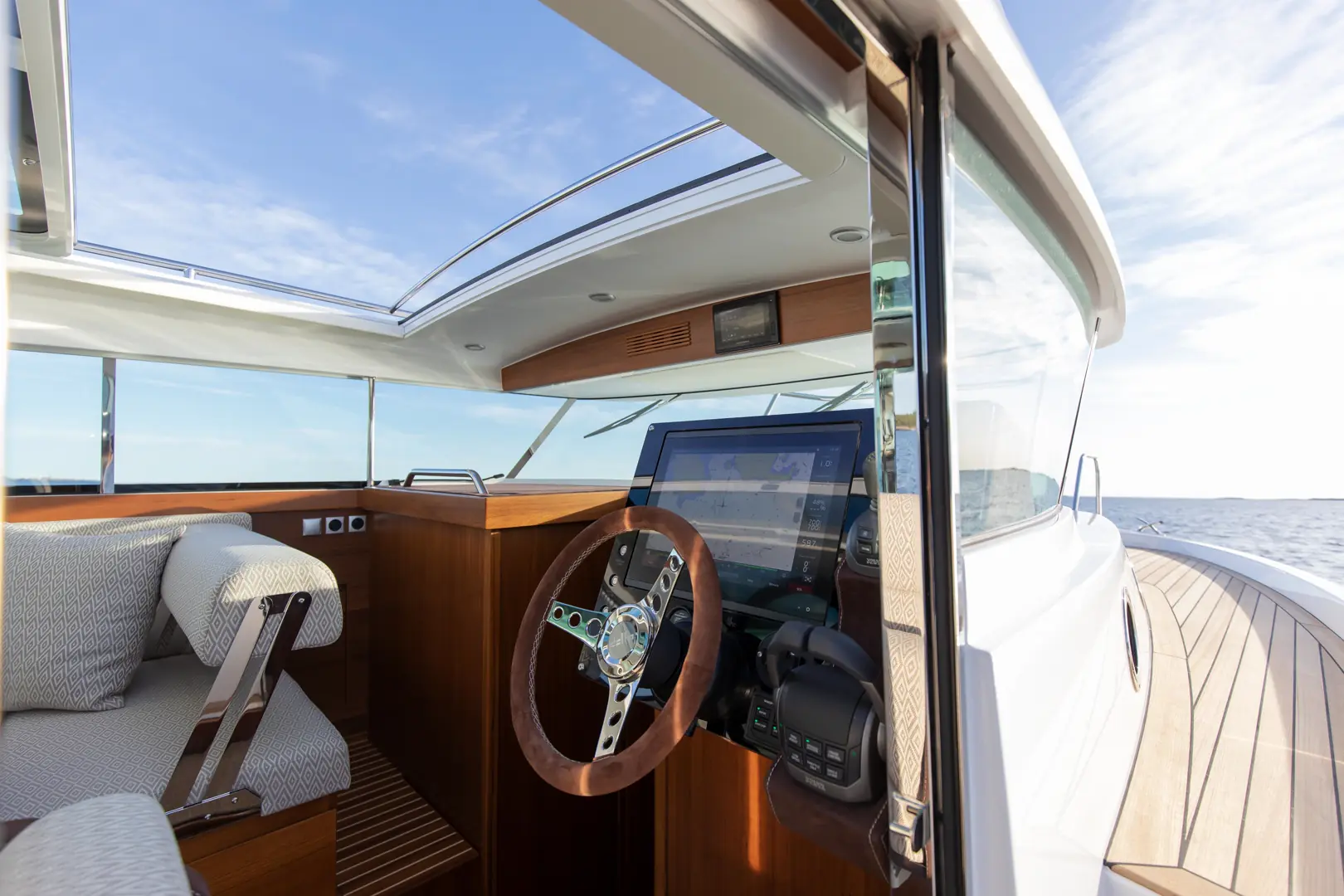 Sømløs integrasjon med moderne manøvreringsteknologi, som valgfritt Dynamic Positioning System og Volvo-joystick, gir enkel håndtering både ved tillegging og under gange. Det brede styrehuset, med sitt nye og forlengede overbygg, gir svært god utsikt og har et elektrisk glasstak som gjør 340 fleksibel i skiftende værforhold og godt egnet for en forlenget båtsesong.
