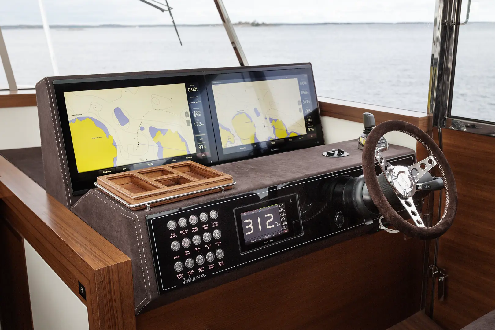 Smarte uteområder med komfortable og sikre dekksløsninger, kombinert med ekte håndverk, luksuriøse detaljer og toppmoderne IPS-poddedrev, gir båten en allsidig karakter — Delta 54 er designet for å utmerke seg i alle typer aktiviteter på vannet.