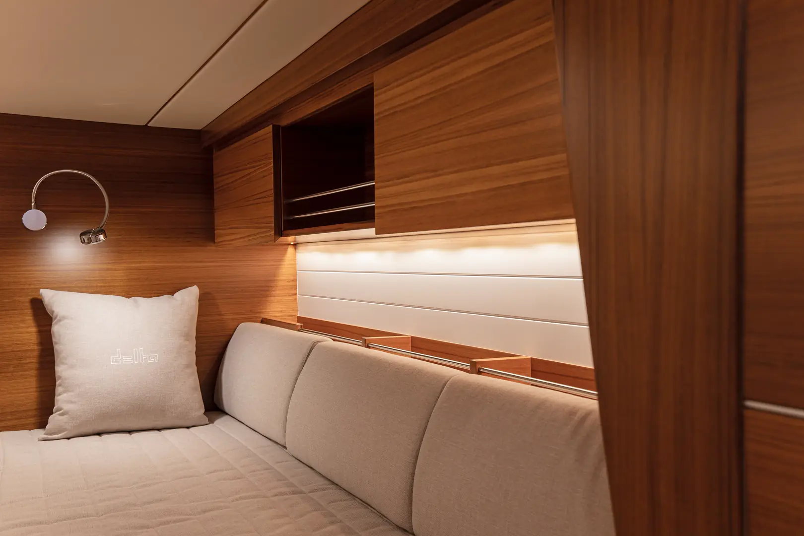 Basert på karbonfiberskroget til Delta 54 og drevet av enten doble Volvo IPS innenbordsmotorer eller triple Mercury V12 utenbordsmotorer, tar Delta 60 dagsturer på sjøen til et nytt nivå ved å kombinere høy ytelse og enestående effektivitet med luksuriøse oppholdsrom om bord.