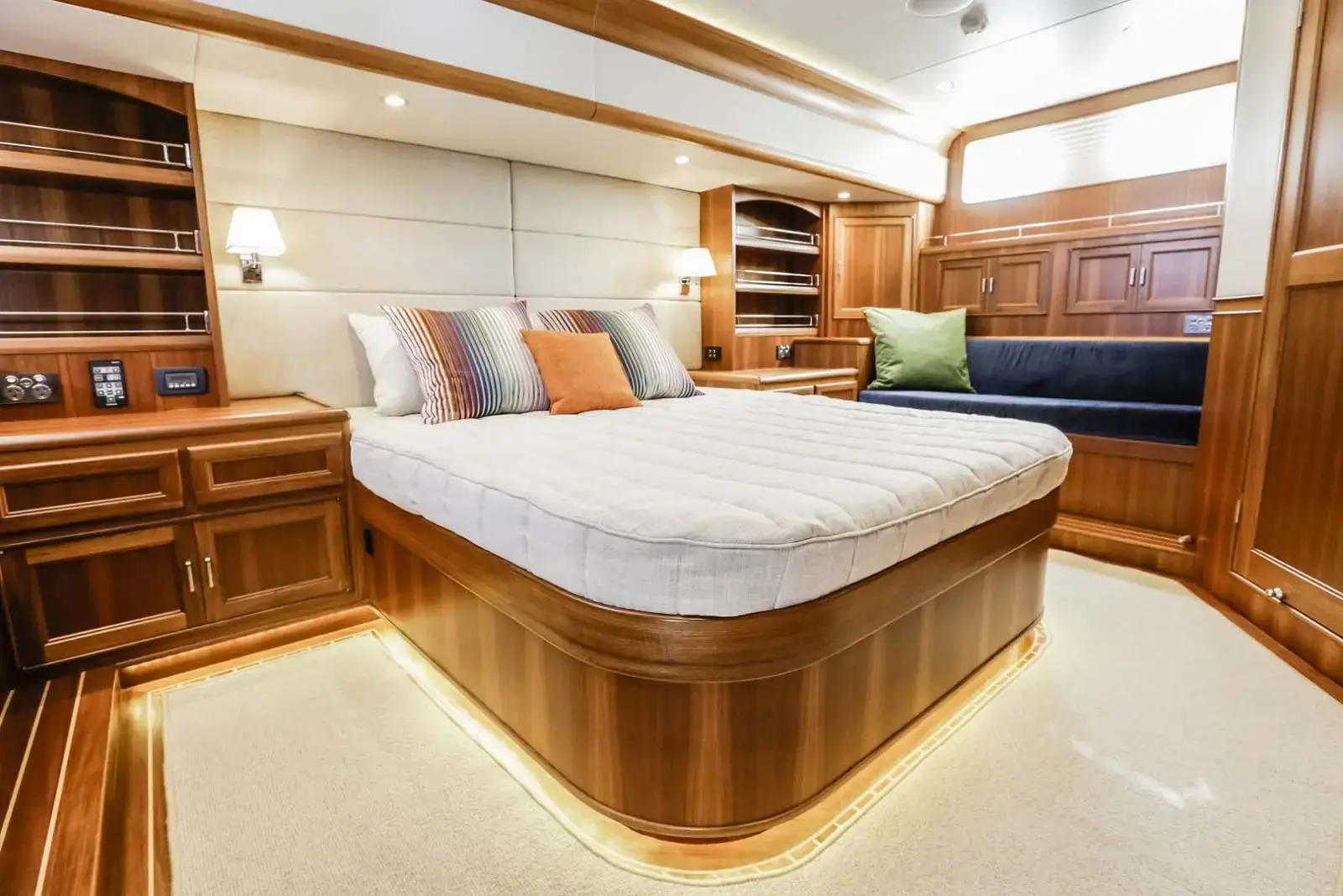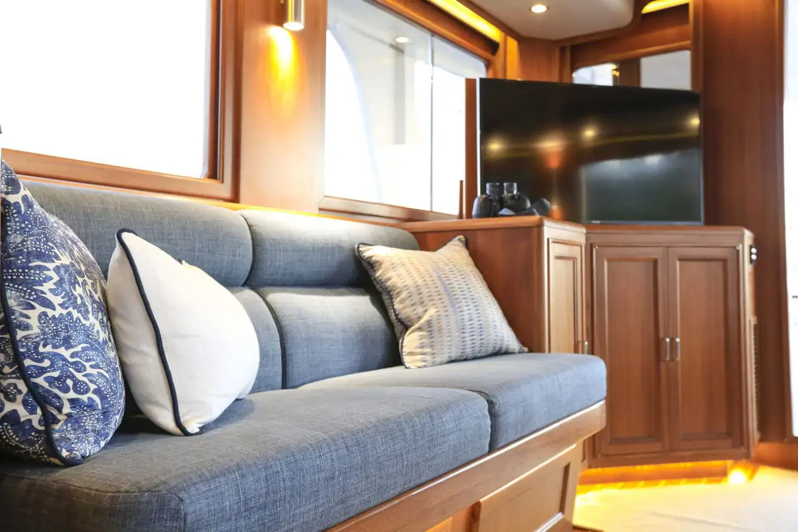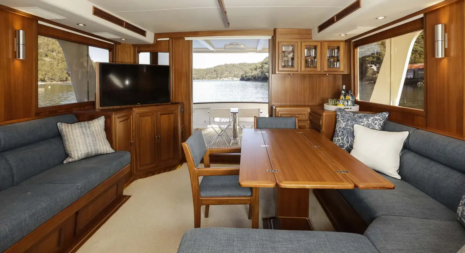 Med et moderne, klassisk og stilrent interiør tilbyr 58-modellen flere smarte oppbevaringsløsninger og en åpen planløsning. Den romslige salongen er perfekt for å samle familien og skape uforglemmelige minner. Store vinduer skaper en lys og innbydende atmosfære, slik at du alltid kan nyte utsikten. Med flere lugarer og bad prioriterer båten privatliv og komfort.