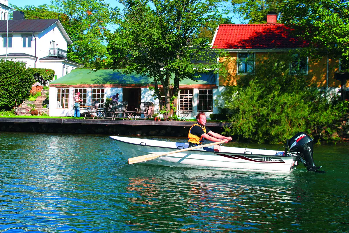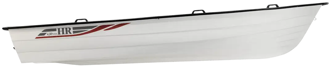 HR 430S er en svært fin og trivelig båt med utmerkede roegenskaper. Med en 10 Hk motor, planer den lett, men vi anbefaler en 15 Hk motor for optimal ytelse. Den har et låsbart stuerom for en 25-liters tank og er klargjort for styrekonsoll, tilgjengelig som ekstrautstyr.