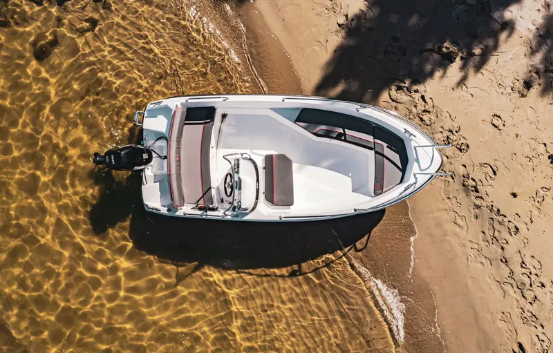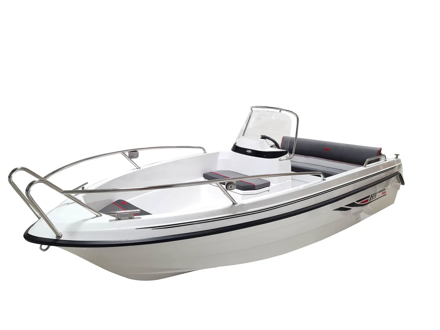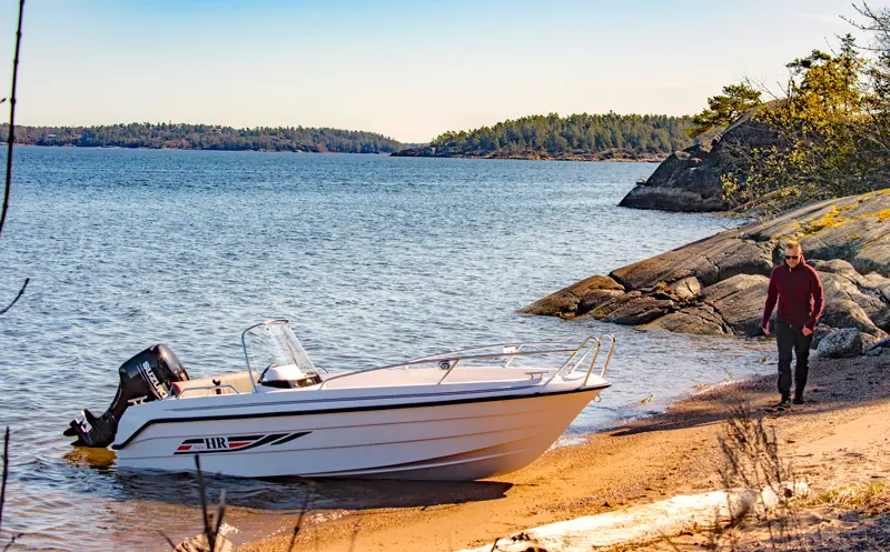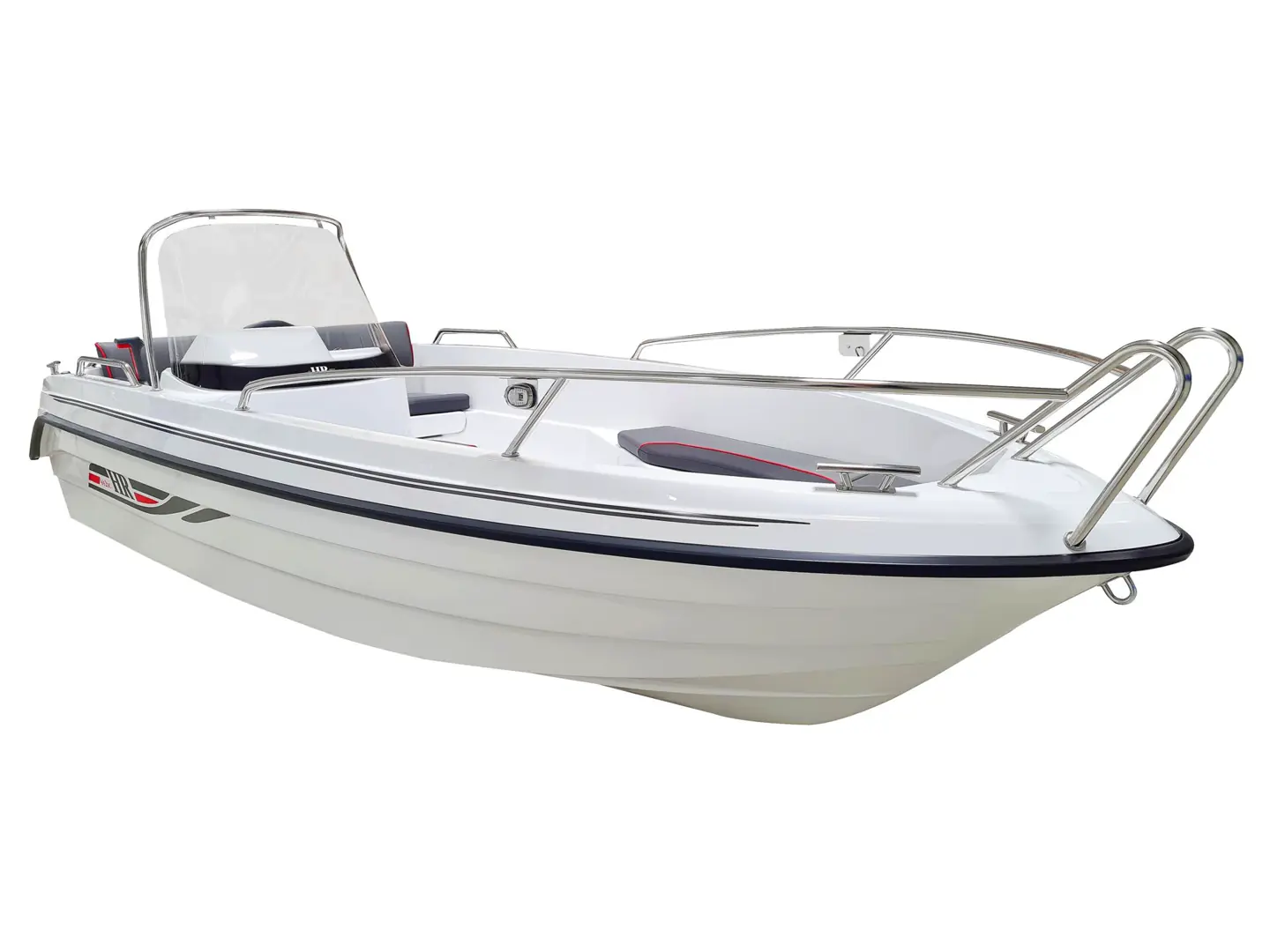 Vi gir deg en båt som er svenskprodusert glassfiberbåt av høyeste kvalitet. Konsollen har god plass for kartplotter og evt. andre instrumenter. Det er et stort stuerom i benk foran konsoll. Konsollens fasong gir bedre dørkplass ved sidepassasje. Stålrekke over akter rygg med ryggpute; dette gir bedre komfort/høyere ryggstøtte på førerbenk. Putesett er standard utstyr i god kvalitet og fine farger.
