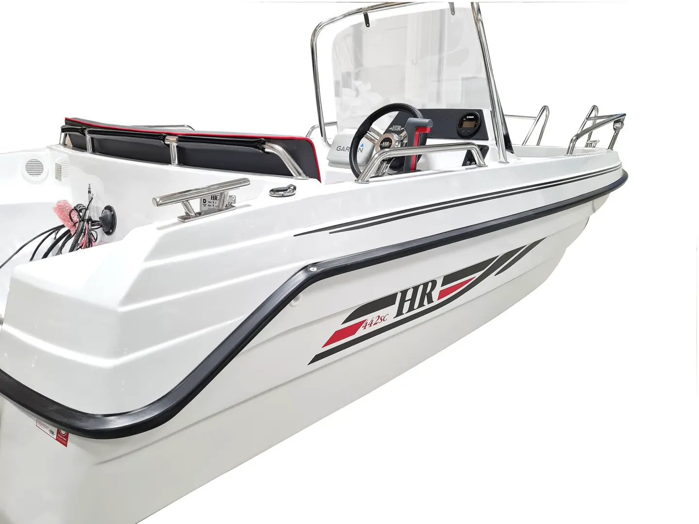 Dette er en meget populær landstedbåt; trygg og lettplanende. Vil du ha en båt som gir deg mye for pengene? Da er HR 442 sc et utmerket valg. HR 442 sc er allsidig og fungerer like godt for fiske, utflukter og vannsport. Båten har plass til 5 personer. Den er lettkjørt og ekstremt stabil i forhold til størrelsen.