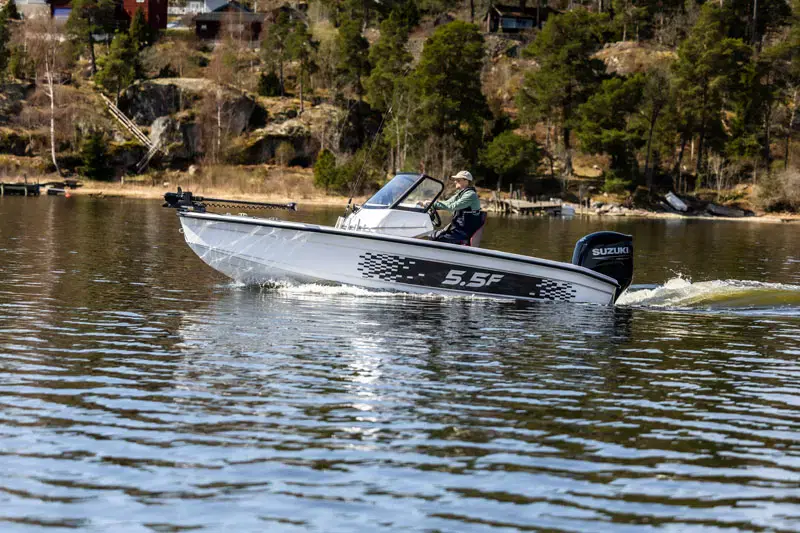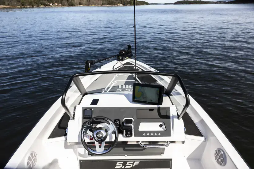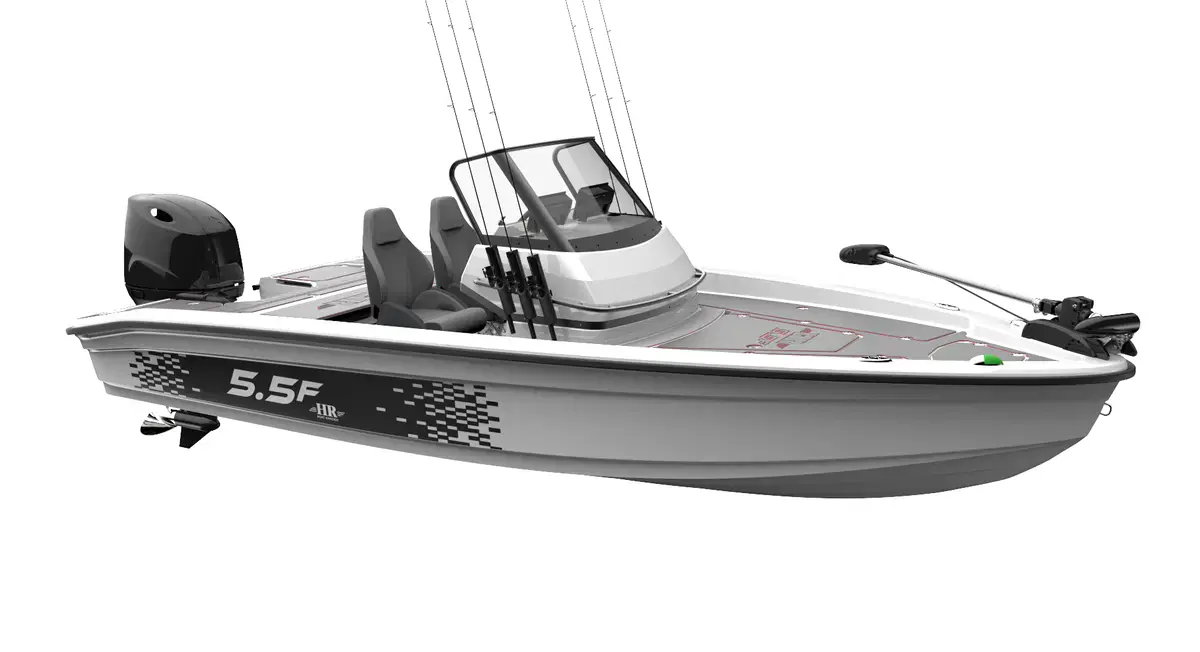 Med HR 5.5F får du en funksjonell båt produsert for å utforske nye fiskevann. Båten er svenskbygget og designet i Sverige og dessuten utviklet i samabeid med fiskere for å få fram en optimal fiskebåt. Lagringsrom for fiskestang på inntil 9 fot, oppbevaringsrom laget for Plano-bokser, mulighet for Livewell, enkel installasjon for batterier og kabler da det er vel forberedt i båten.