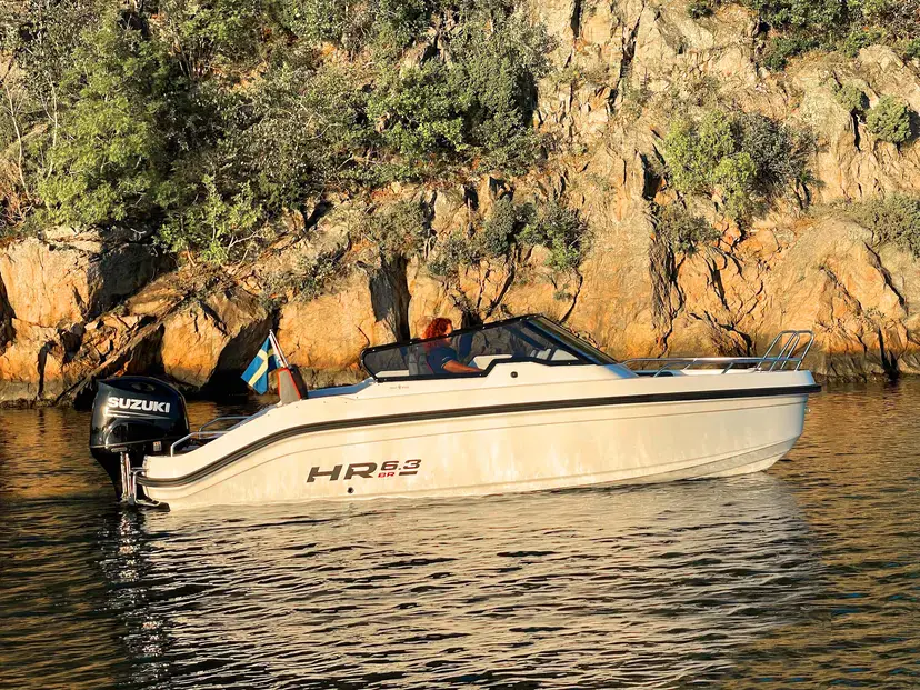 HR 6,3BR har seks store oppbevaringsrom, inkluderte puter og solsengputer, elektrisk lensepumpe, tre ankerbokser og badestige.