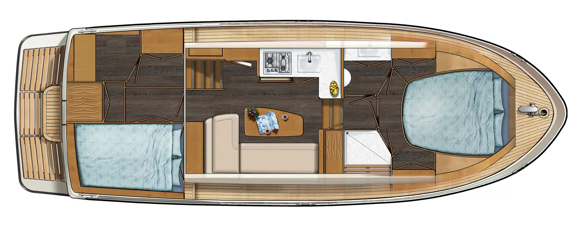 Med den lille 30.0 AC og Sedan demonstrerer Linssen Yachts at ‘plass’ er en relativ opplevelse, og at sjøegenskaper ikke er avhengig av dimensjoner. Alt som gjør en Linssen til en Linssen er til stede, men i dette tilfellet i en yacht av stål på 'bare' 10 meter. Alt ligger til rette for en herlig båtferie ombord i Linssens minste hytte på vannet. Stylingen og interiøret er laget i samarbeid med KesselsGranger DesignWorks.