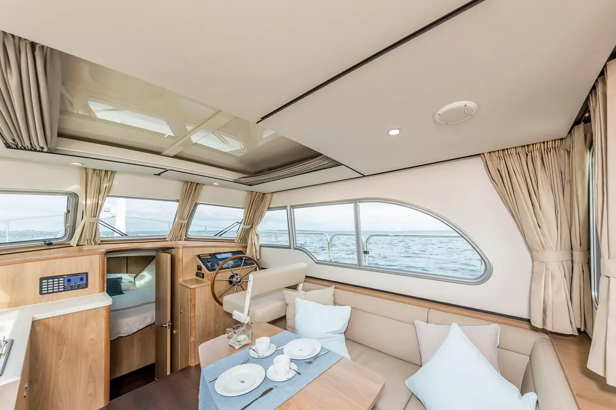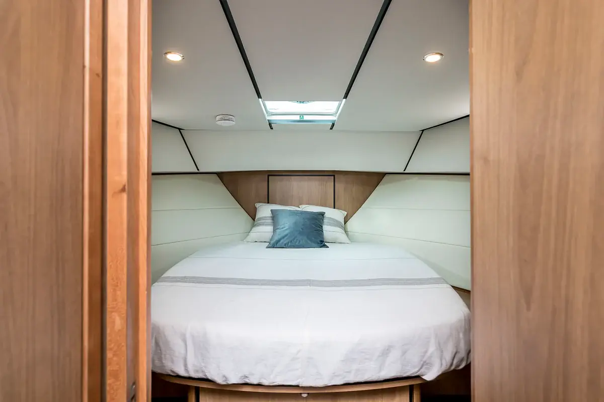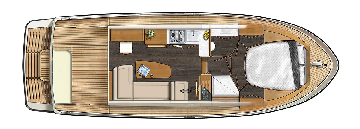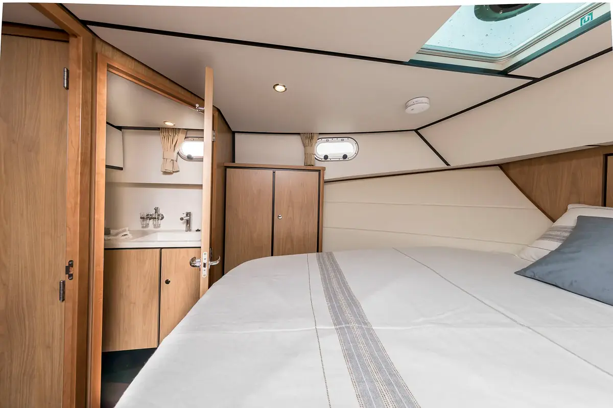 Med den lille 30.0 AC og Sedan demonstrerer Linssen Yachts at ‘plass’ er en relativ opplevelse, og at sjøegenskaper ikke er avhengig av dimensjoner. Alt som gjør en Linssen til en Linssen er til stede, men i dette tilfellet i en yacht av stål på 'bare' 10 meter. Dette er sedan-søsteren til 30.0 AC. De samme målene og de samme kvalitetene, så hvis en kabin er tilstrekkelig, kan Sedan-versjonen være et alternativ. De brede, doble, utadvendte dørene lar deg forvandle salongen og åpne cockpiten til et stort rom.