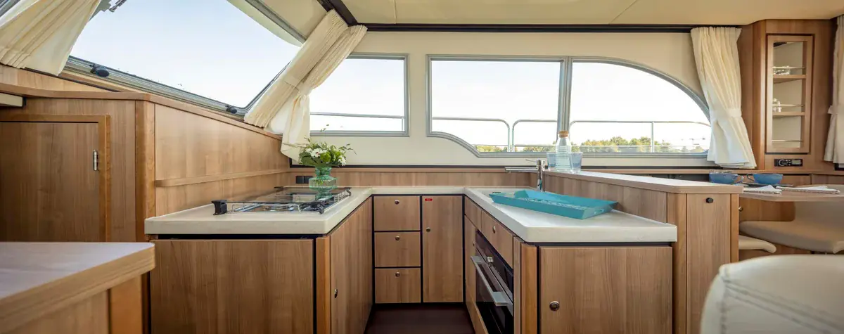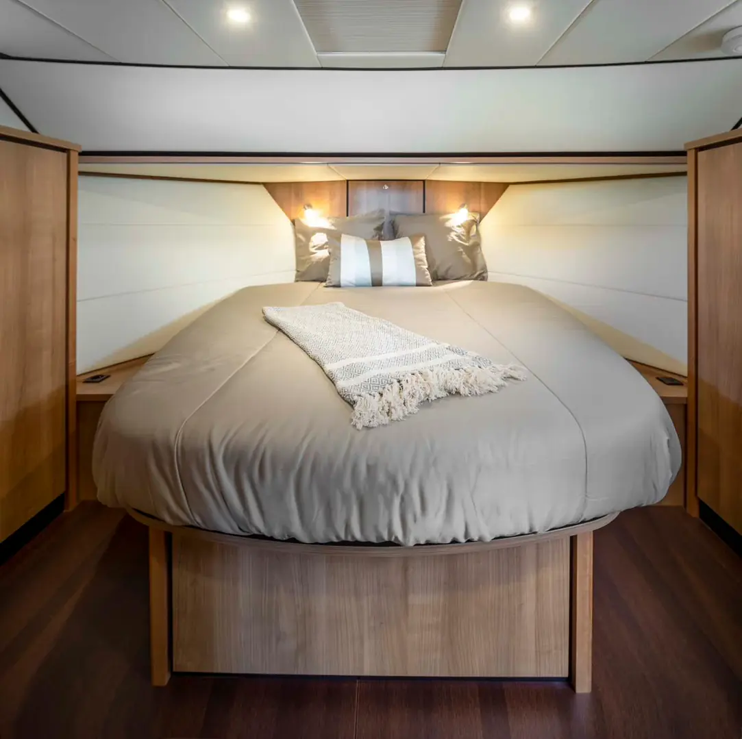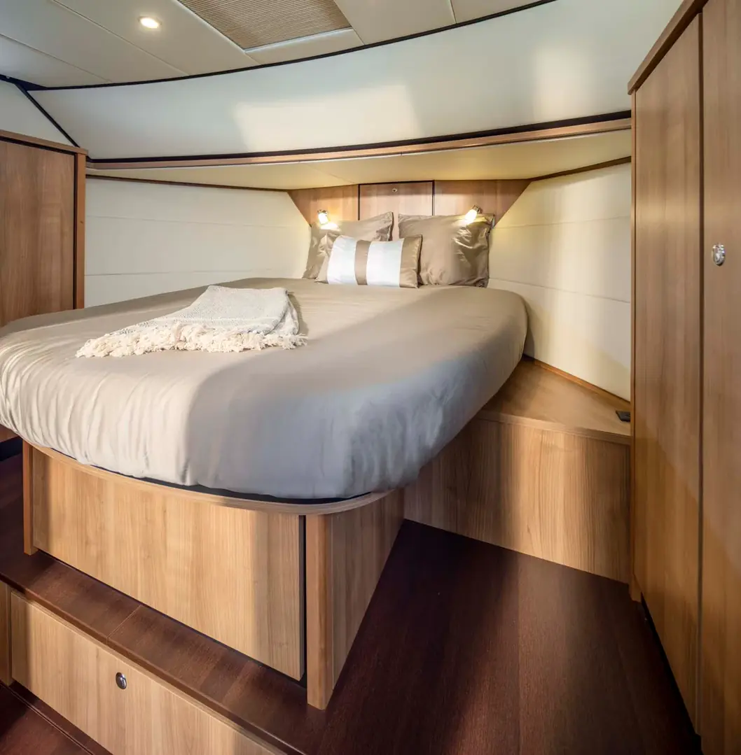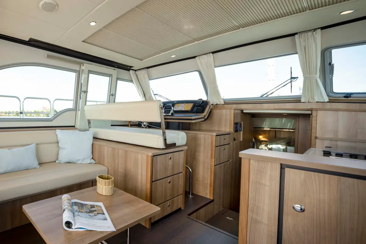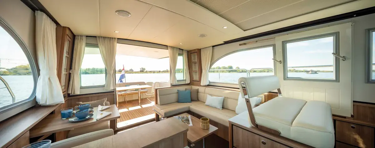I Grand Sturdy 40.0 Sedan er salongen og cockpiten på et og samme plan, med bare en lav terskel som skille. Linssen Longtop dekker hele cockpiten, og dette betyr at du kan holde deg komfortabel og tørr når du sitter på den integrerte sofaen, med den åpning for den midtplasserte døren i akterspeilet som gir tilgang til badeplattformen.