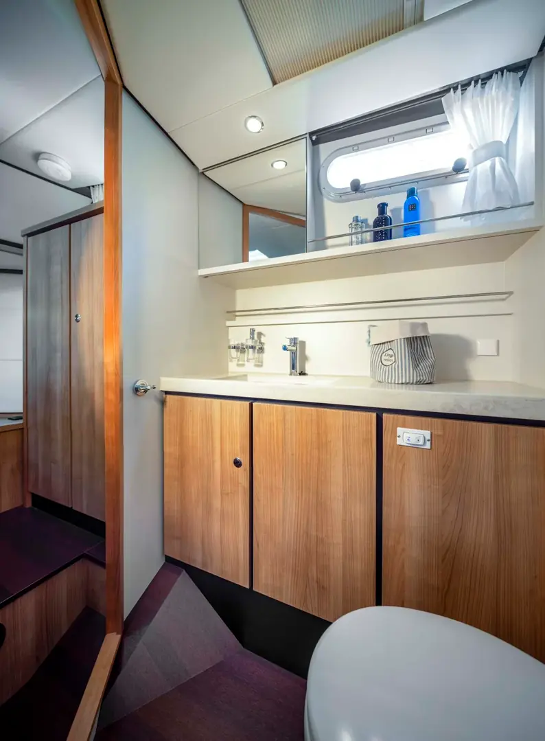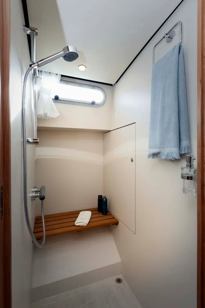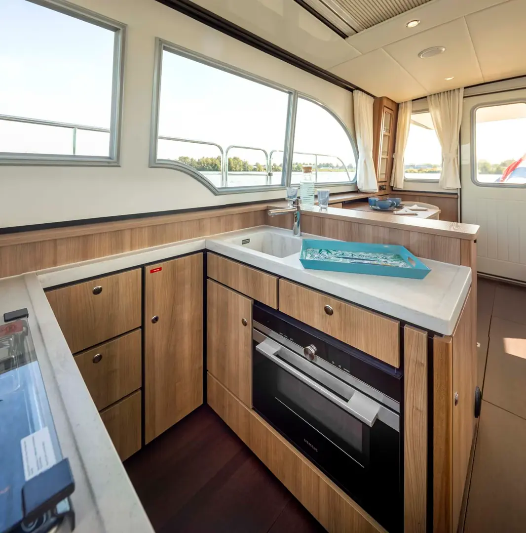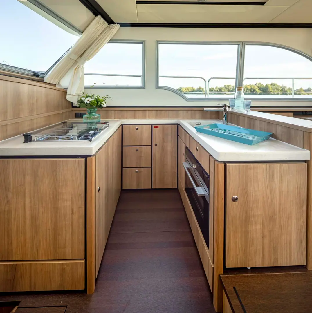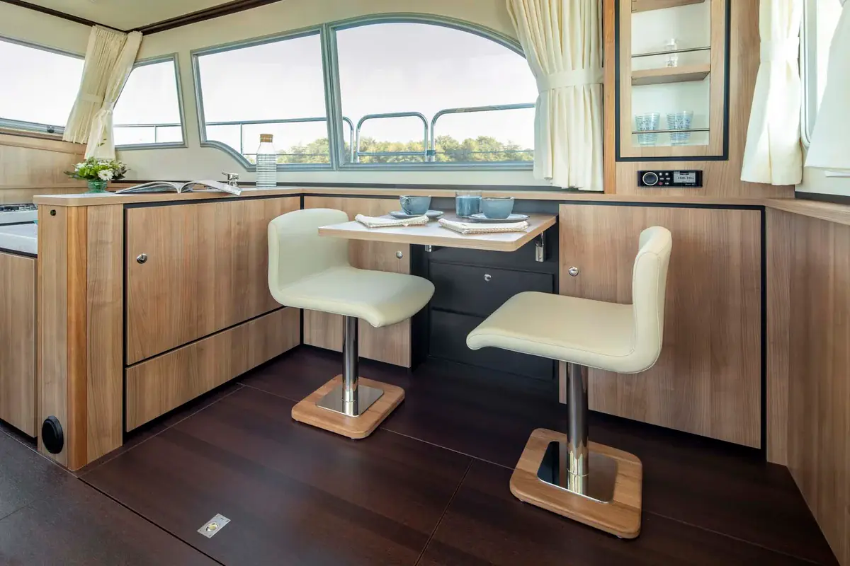I Grand Sturdy 40.0 Sedan er salongen og cockpiten på et og samme plan, med bare en lav terskel som skille. Linssen Longtop dekker hele cockpiten, og dette betyr at du kan holde deg komfortabel og tørr når du sitter på den integrerte sofaen, med den åpning for den midtplasserte døren i akterspeilet som gir tilgang til badeplattformen.