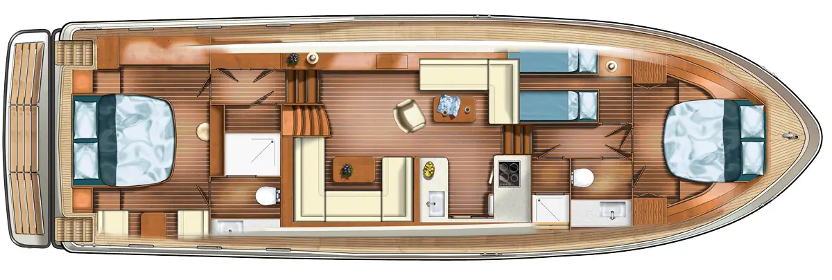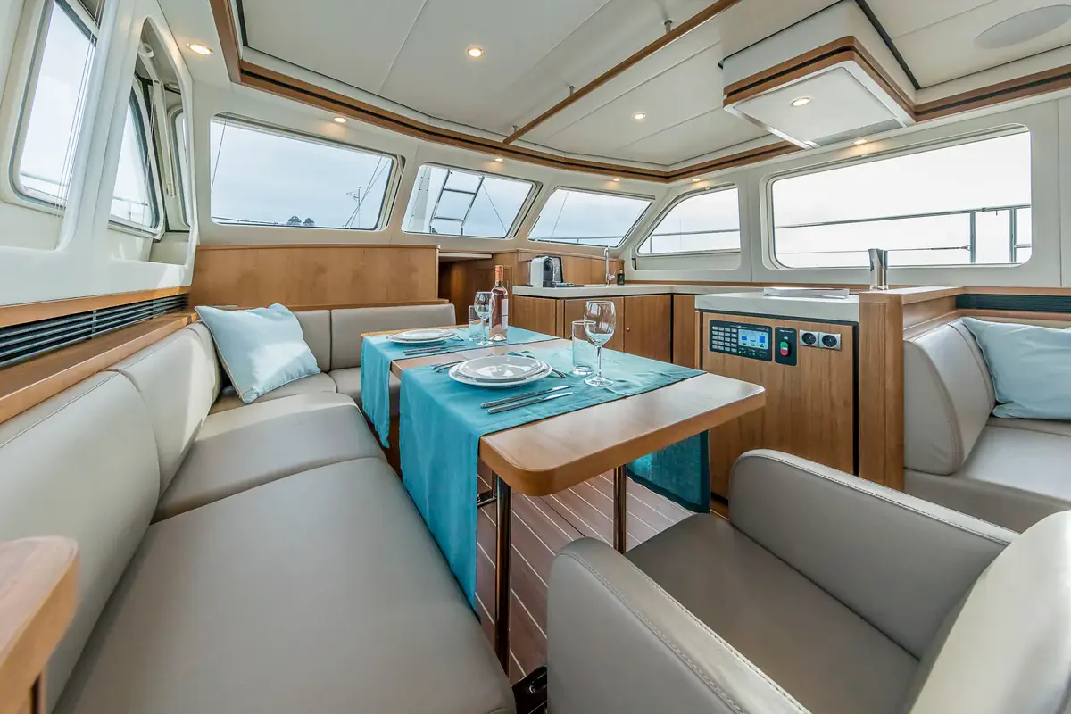 Med ny modellbetegnelse blir også skroget både noen centimeter lengre og bredere. DU får nå hydraulisk hev- og senkbar badeplattform som standard, utvidet solarpakke, bredere integrerte trinn for ombordstigning og et helt nytt og enestående renseanlegg for septik!