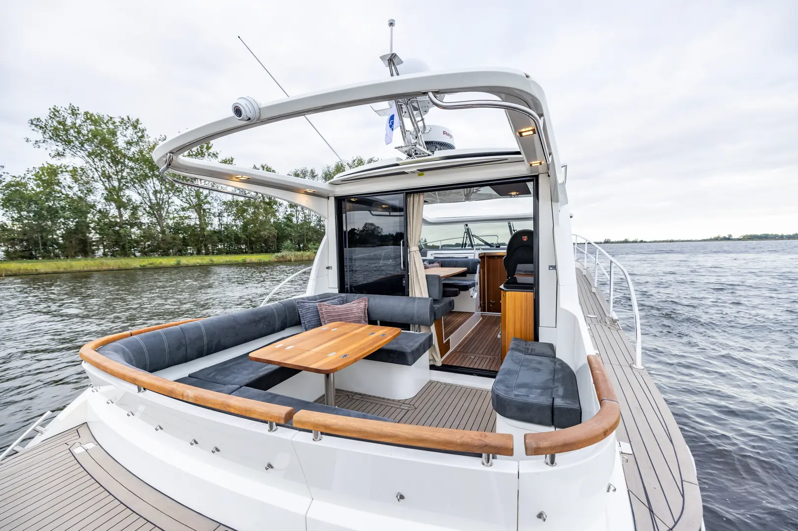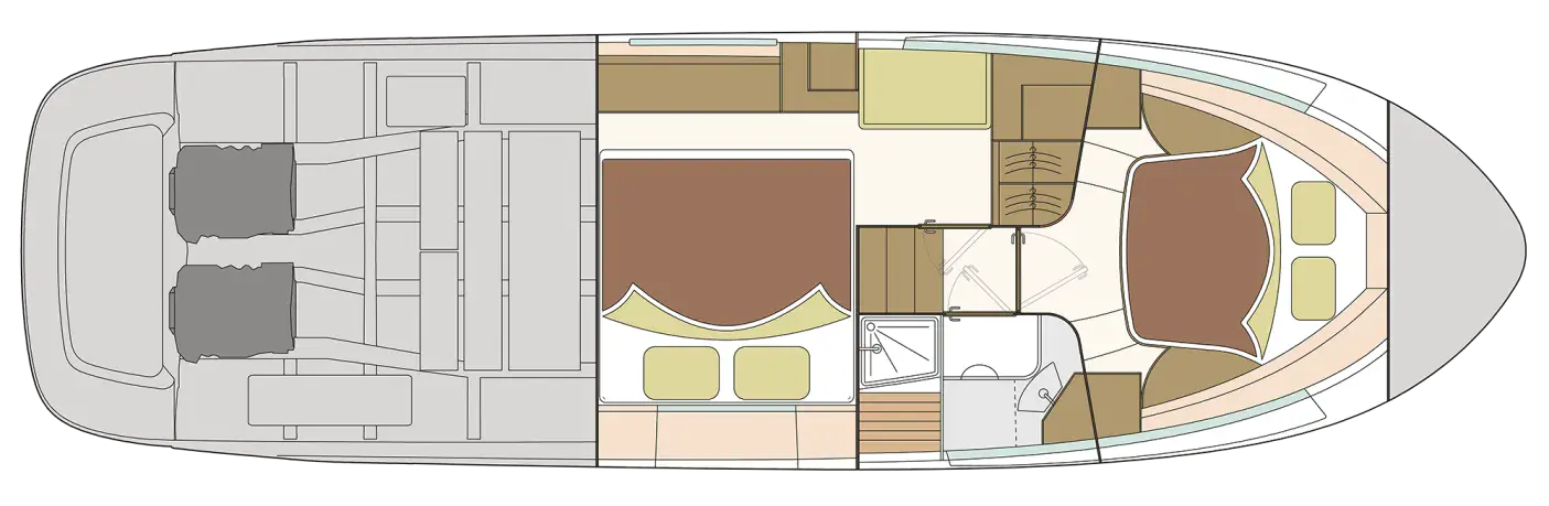 Med mulighet for overnatting for opptil 6 personer (med ekstra køyeplasser), er Marex 375 den perfekte familiebåten. Den har en flott kombinasjon av inne- og uteområder for deg som ønsker å tilbringe en komfortabel langhelg på vannet.