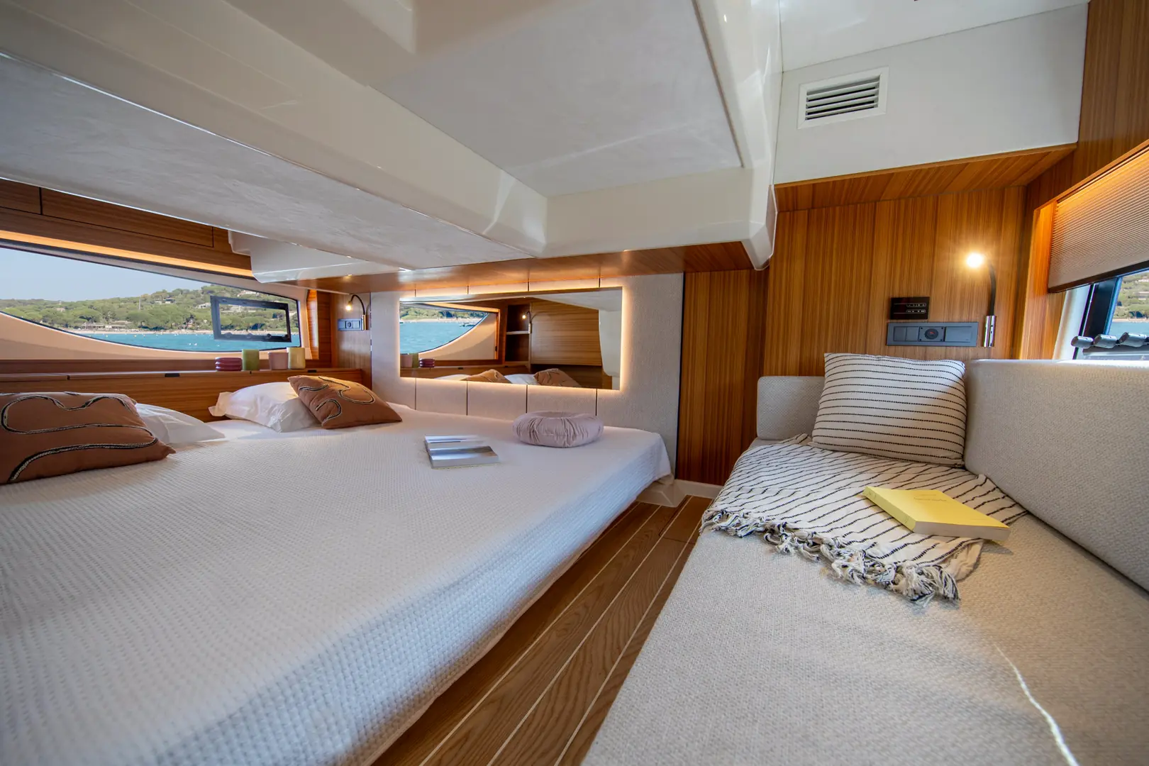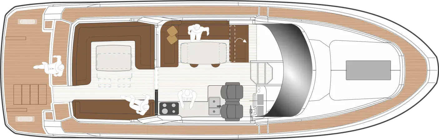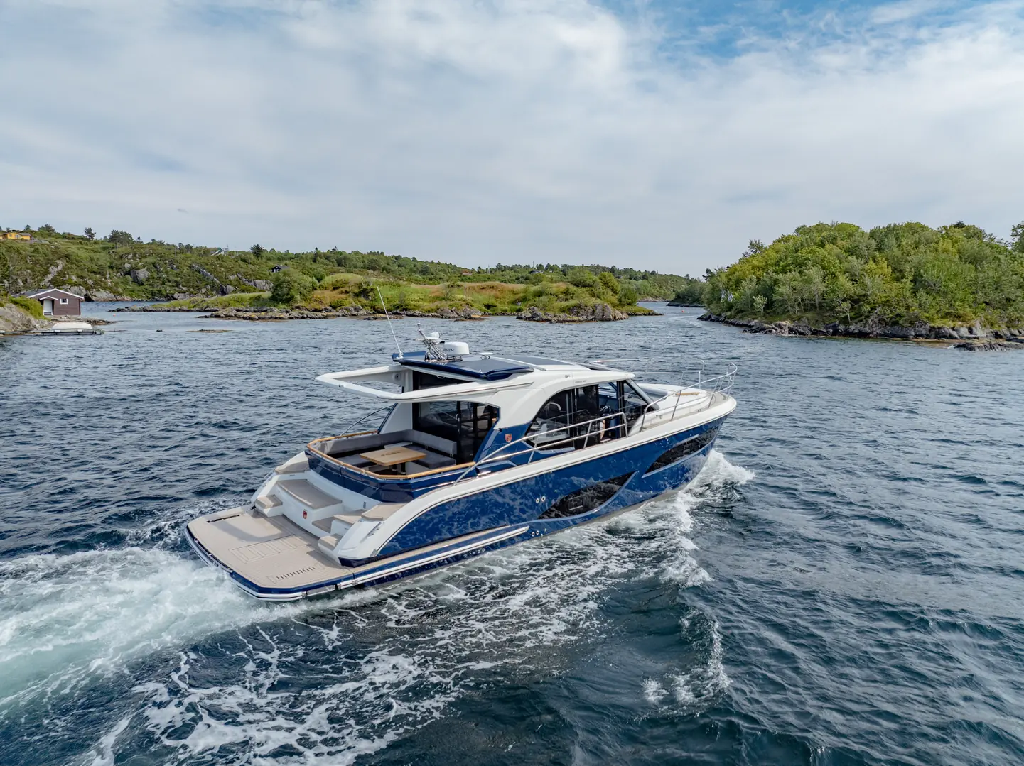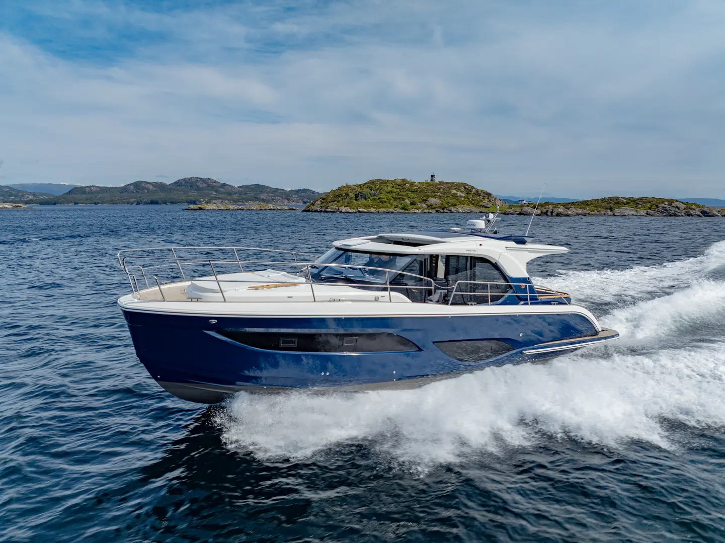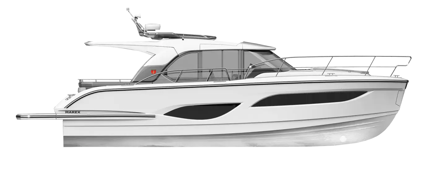 Marex 440 Scandinavia er den andre versjonen av verftets flaggskipmodell. Den redefinerer moderne cruising med en perfekt kombinasjon av luksus og funksjonalitet. Med fokus på sosiale soner tilbyr Marex 440 Scandinavia to romslige spiseområder om bord, og sørger for rask og direkte tilgang til dekk takket være sidedører for både fører og medfører.