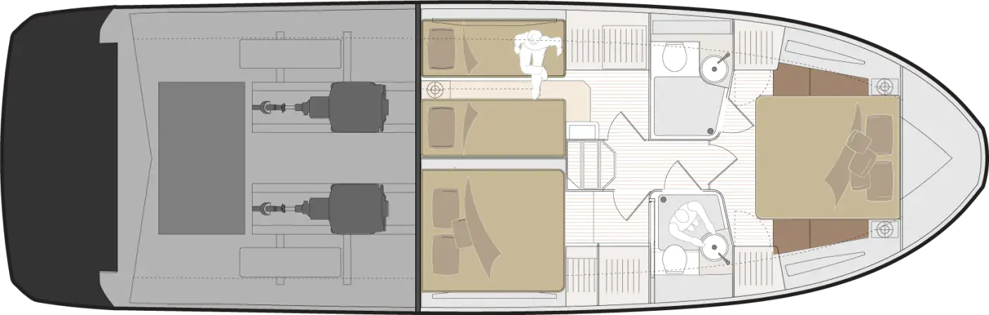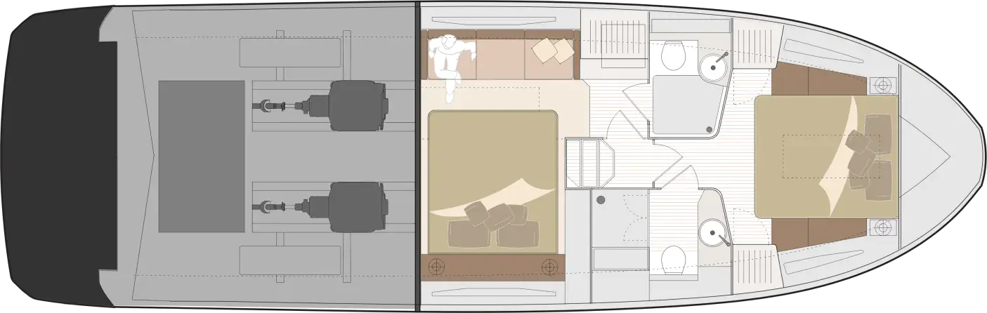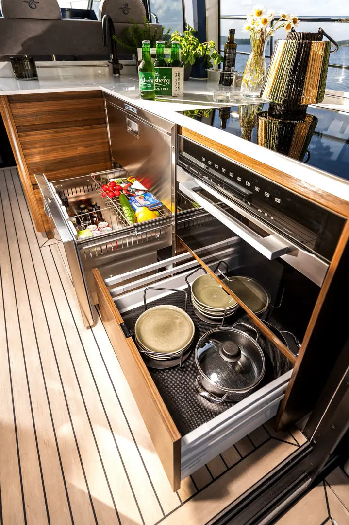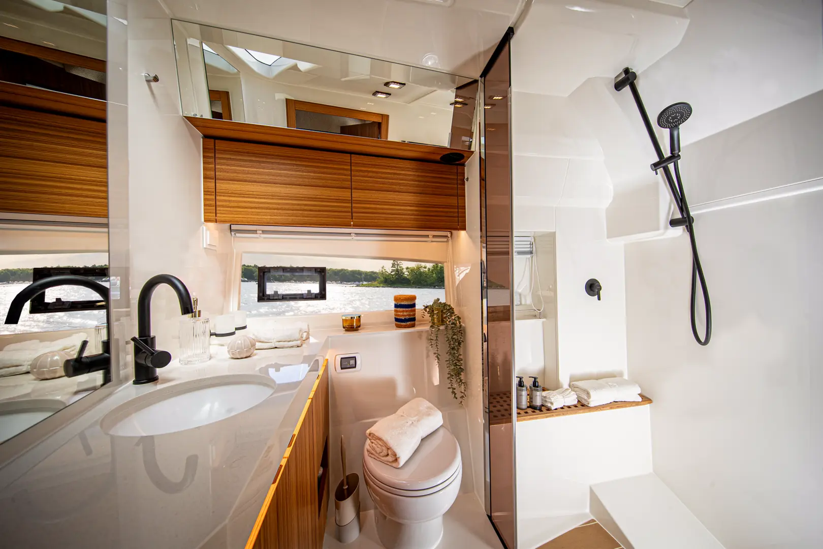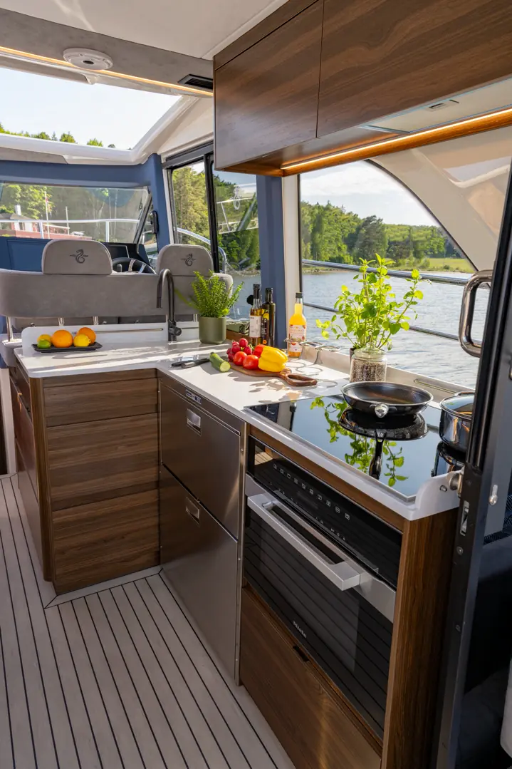 Marex 440 Scandinavia er den andre versjonen av verftets flaggskipmodell. Den redefinerer moderne cruising med en perfekt kombinasjon av luksus og funksjonalitet. Med fokus på sosiale soner tilbyr Marex 440 Scandinavia to romslige spiseområder om bord, og sørger for rask og direkte tilgang til dekk takket være sidedører for både fører og medfører.