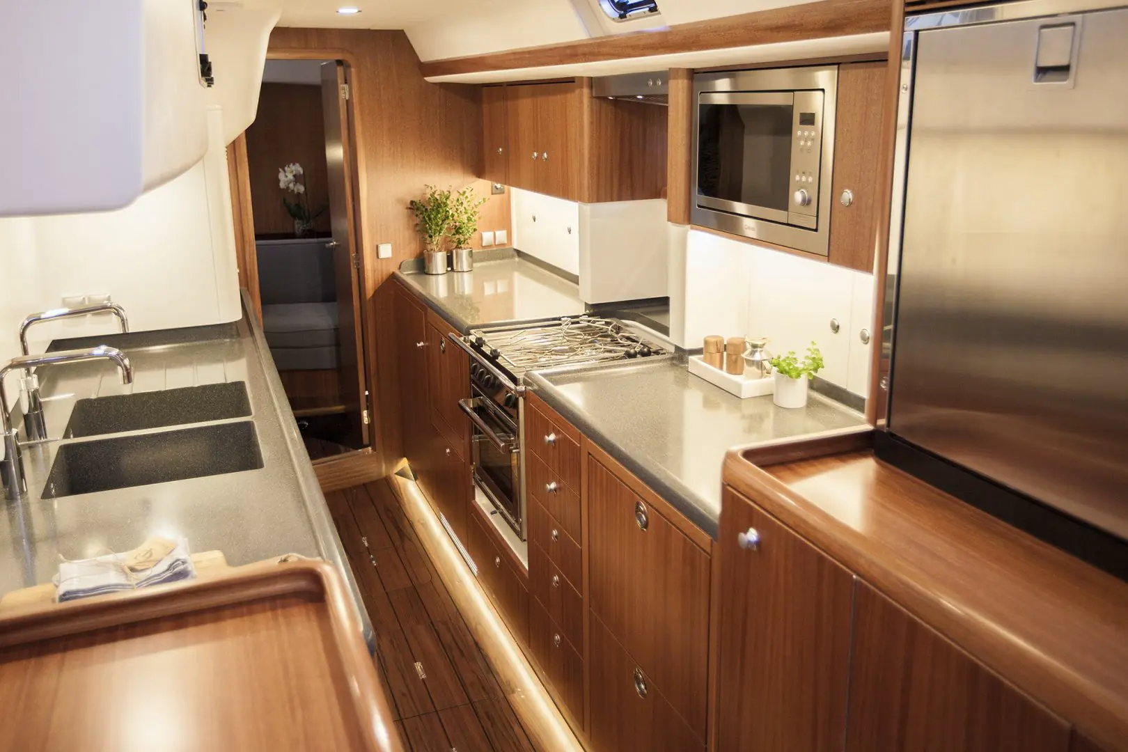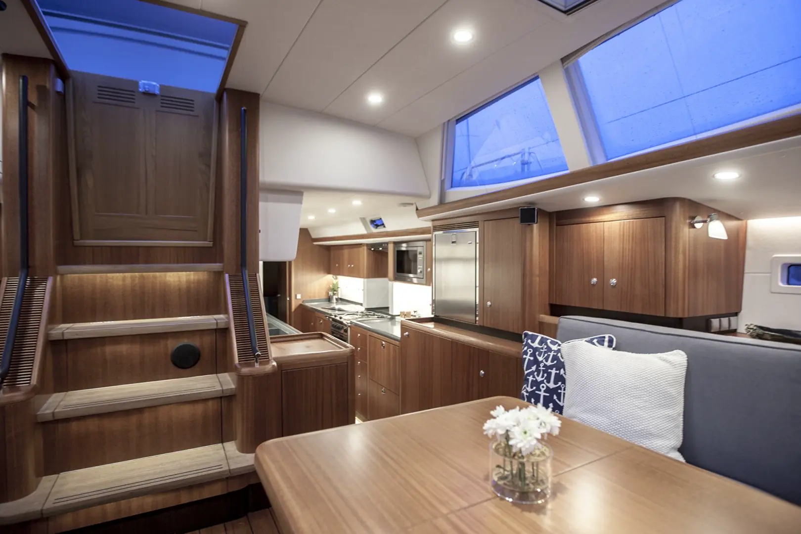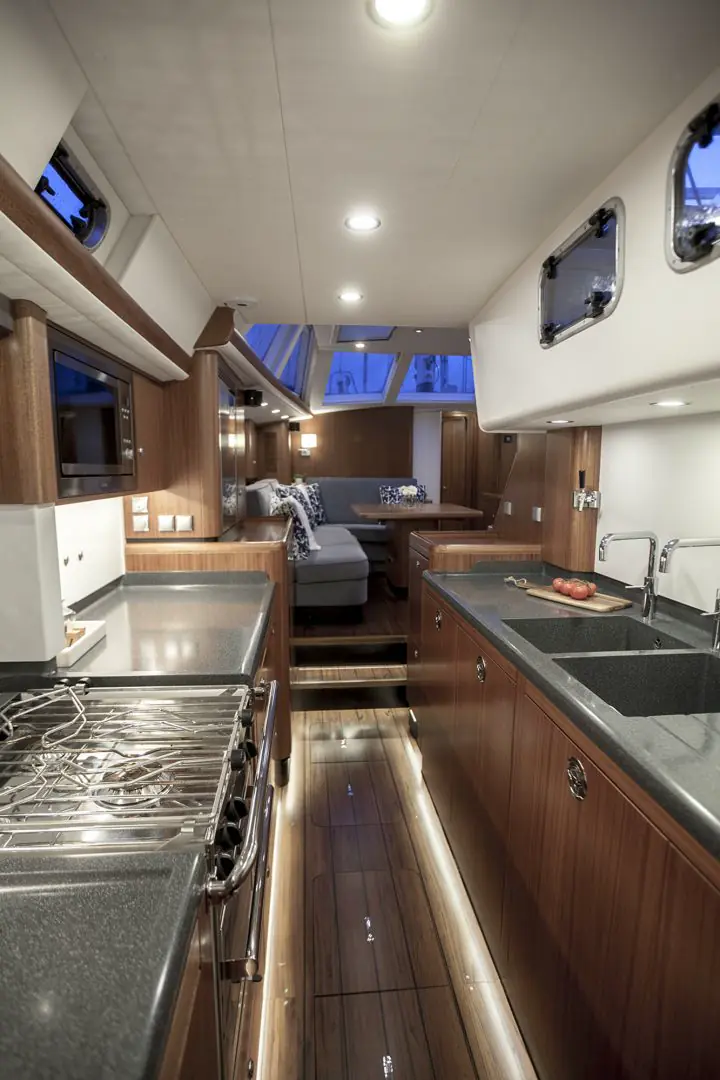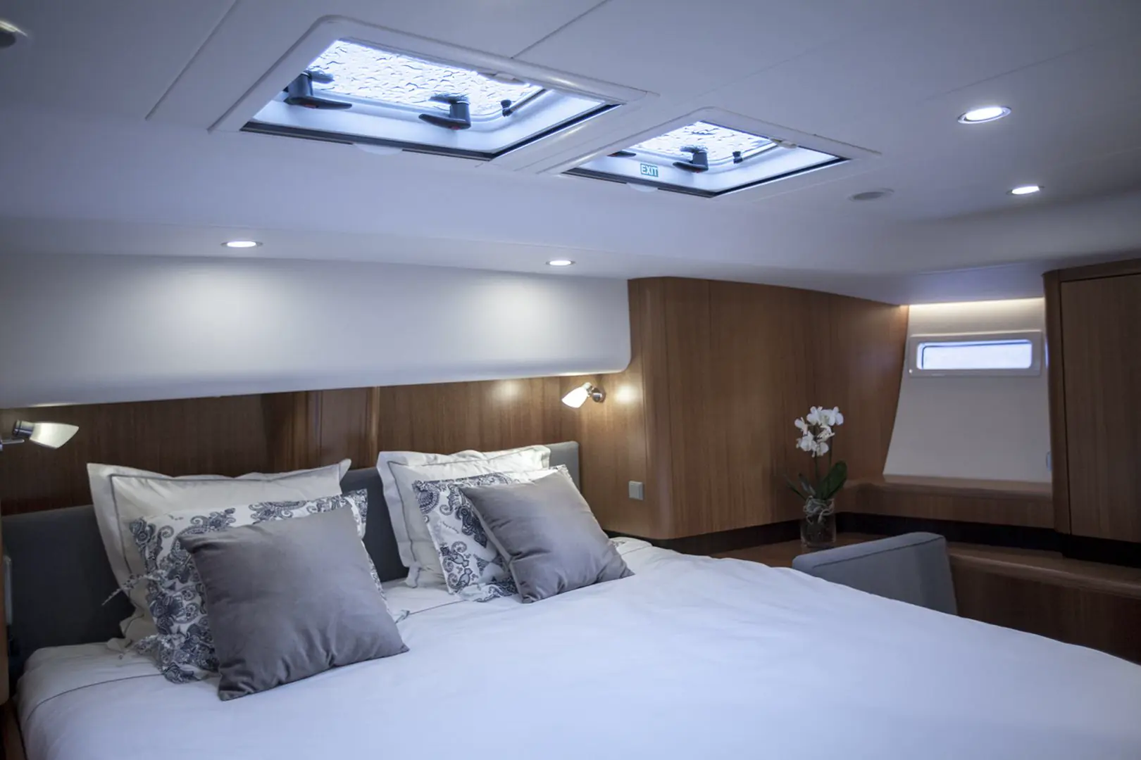 Najad 570 CC er av imponerende proporsjoner fra alle vinkler; fra de sotede, langstrakte vinduene i dekksalongen og de store, åpne dekksflatene, til den godt beskyttede cockpiten med doble rattpidestaller. Under dekk er det lagt vekt på naturlig lys, romslige oppholdsrom og luksuriøs komfort. Det nyskapende interiørdesignet inkluderer store vinduer i dekkshuset og skroget. Innredningens finish når det gjelder trearbeid og håndverk er typisk for Najad – praktisk og storslått på alle plan.