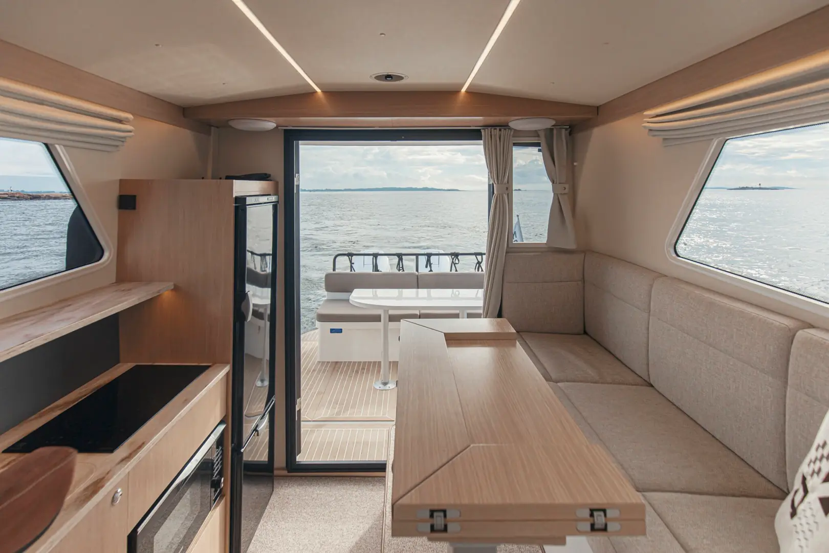 Nord Star 33+ er en båt som ikke bare er sjødyktig, robust og sikker, men også komfortabel og eksklusiv. Interiøret utstråler moderne skandinavisk design, og materialvalget er det absolutt beste.