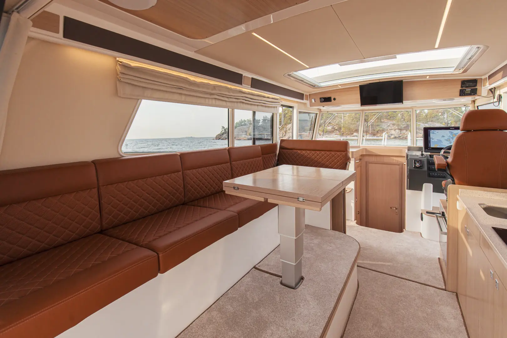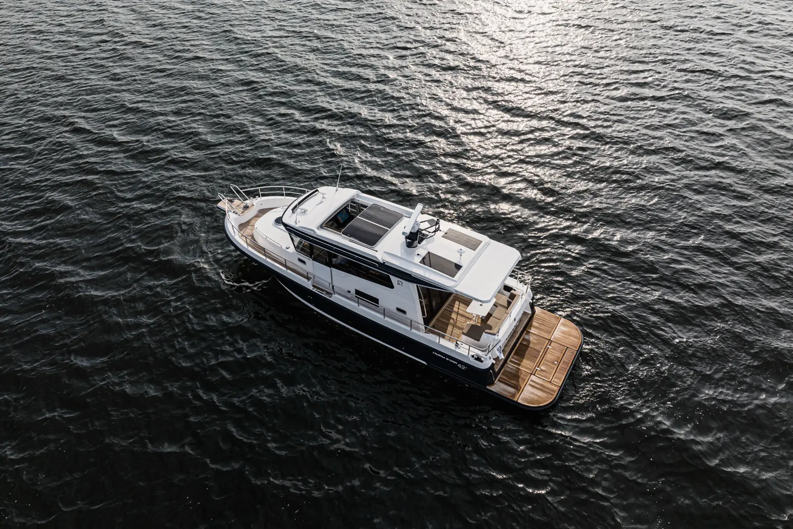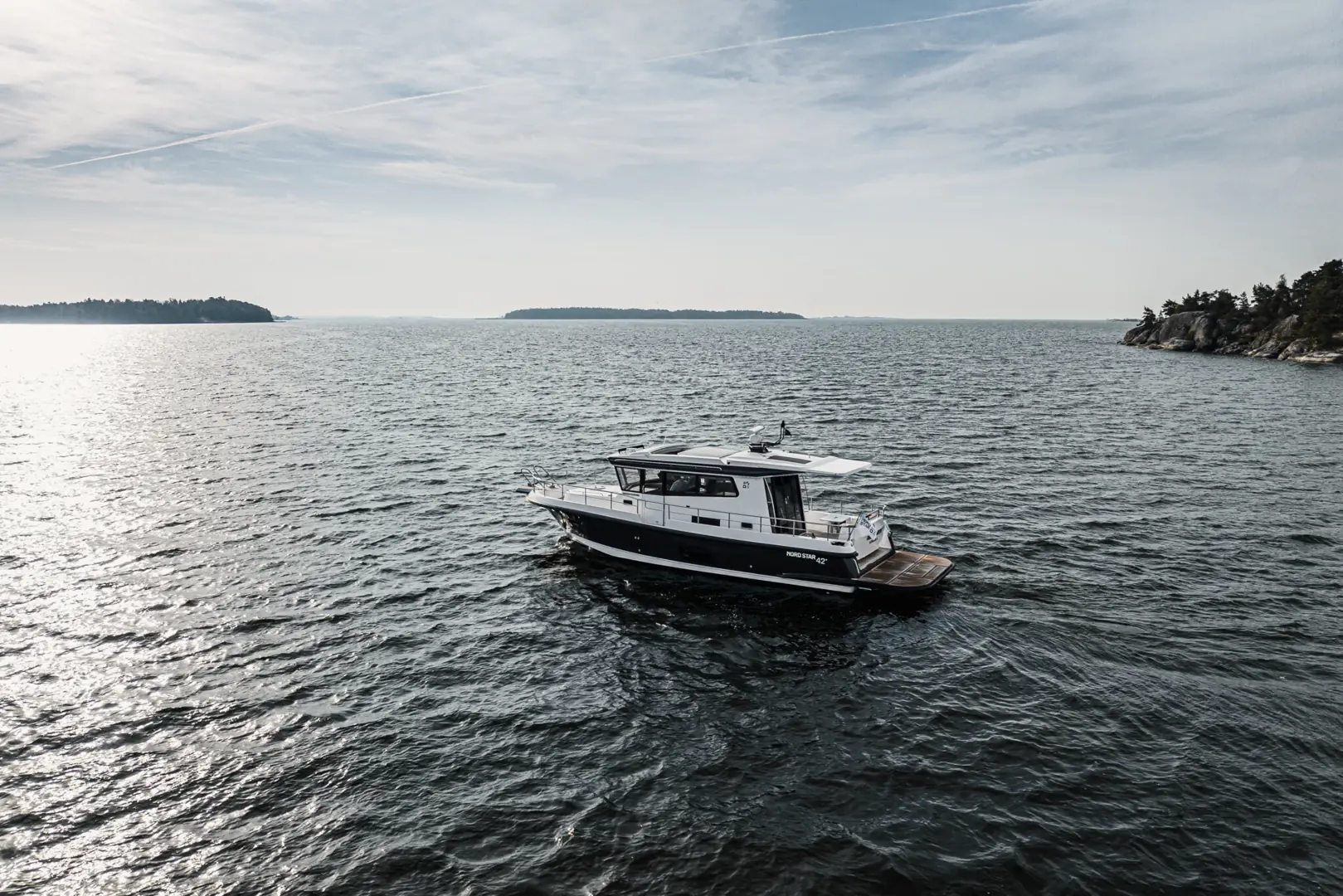 Nord Star 42+ er unik i sin klasse. Ingen andre produsenter kombinerer en sjødyktig helårsbåt med den typen eleganse og komfort som Nord Star 42+ tilbyr. De fineste materialene kombinert med skandinavisk designtradisjon gir en avslappet og elegant følelse inni, men ikke la deg lure. Nord Star 42+ er en sjøjeep med sjøegenskaper og hastighetsressurser utover det vanlige.