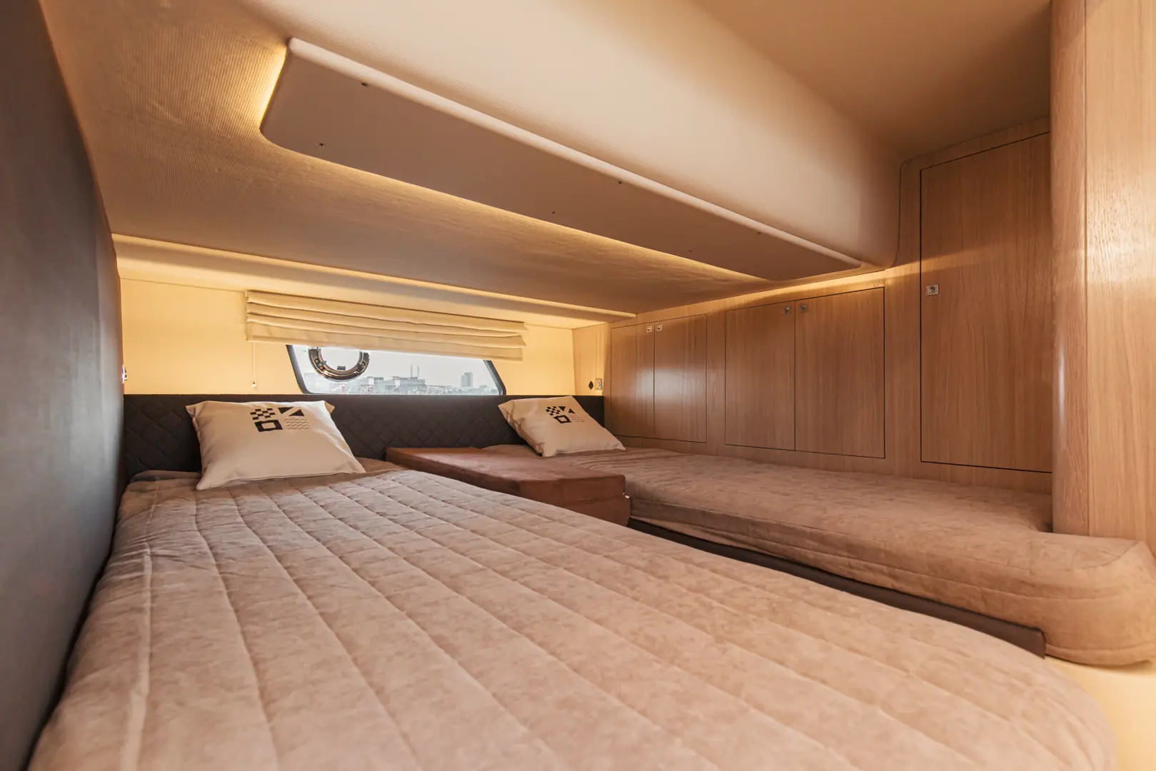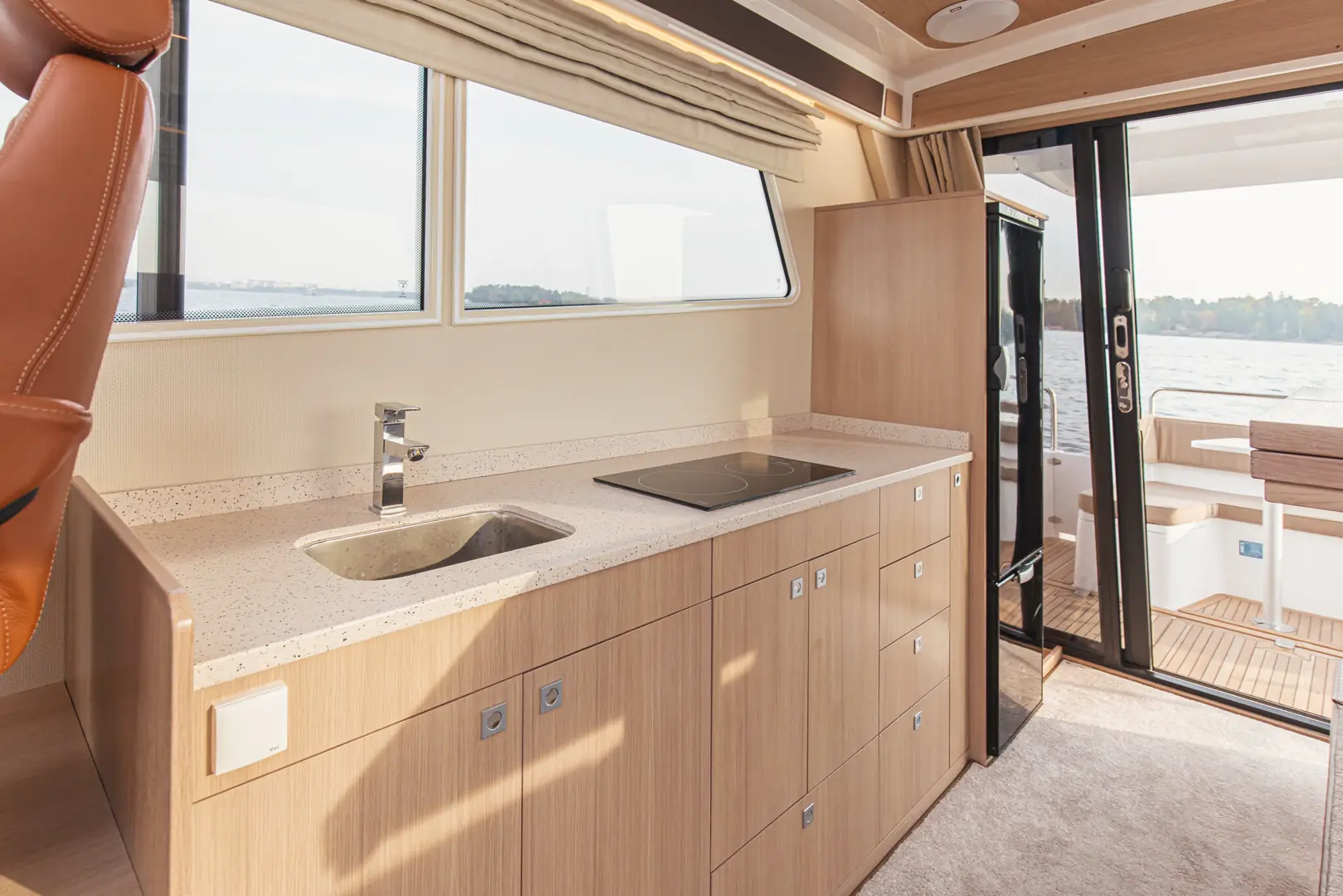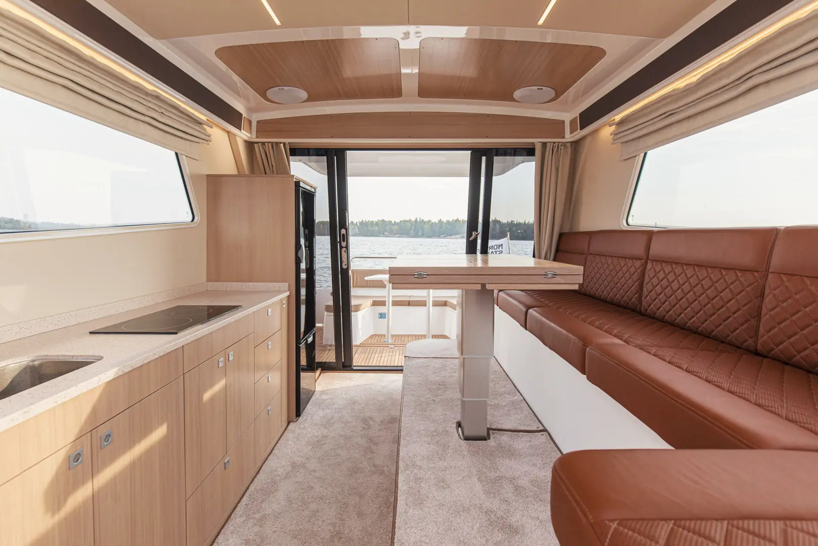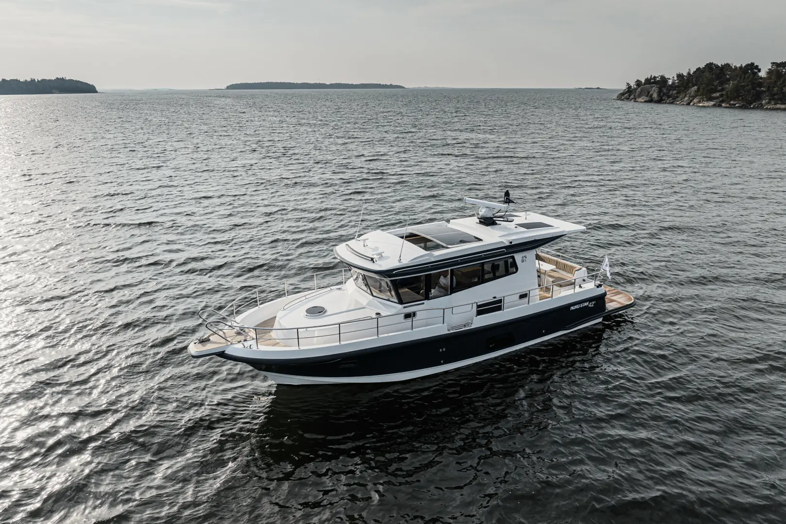 Nord Star 42+ er unik i sin klasse. Ingen andre produsenter kombinerer en sjødyktig helårsbåt med den typen eleganse og komfort som Nord Star 42+ tilbyr. De fineste materialene kombinert med skandinavisk designtradisjon gir en avslappet og elegant følelse inni, men ikke la deg lure. Nord Star 42+ er en sjøjeep med sjøegenskaper og hastighetsressurser utover det vanlige.