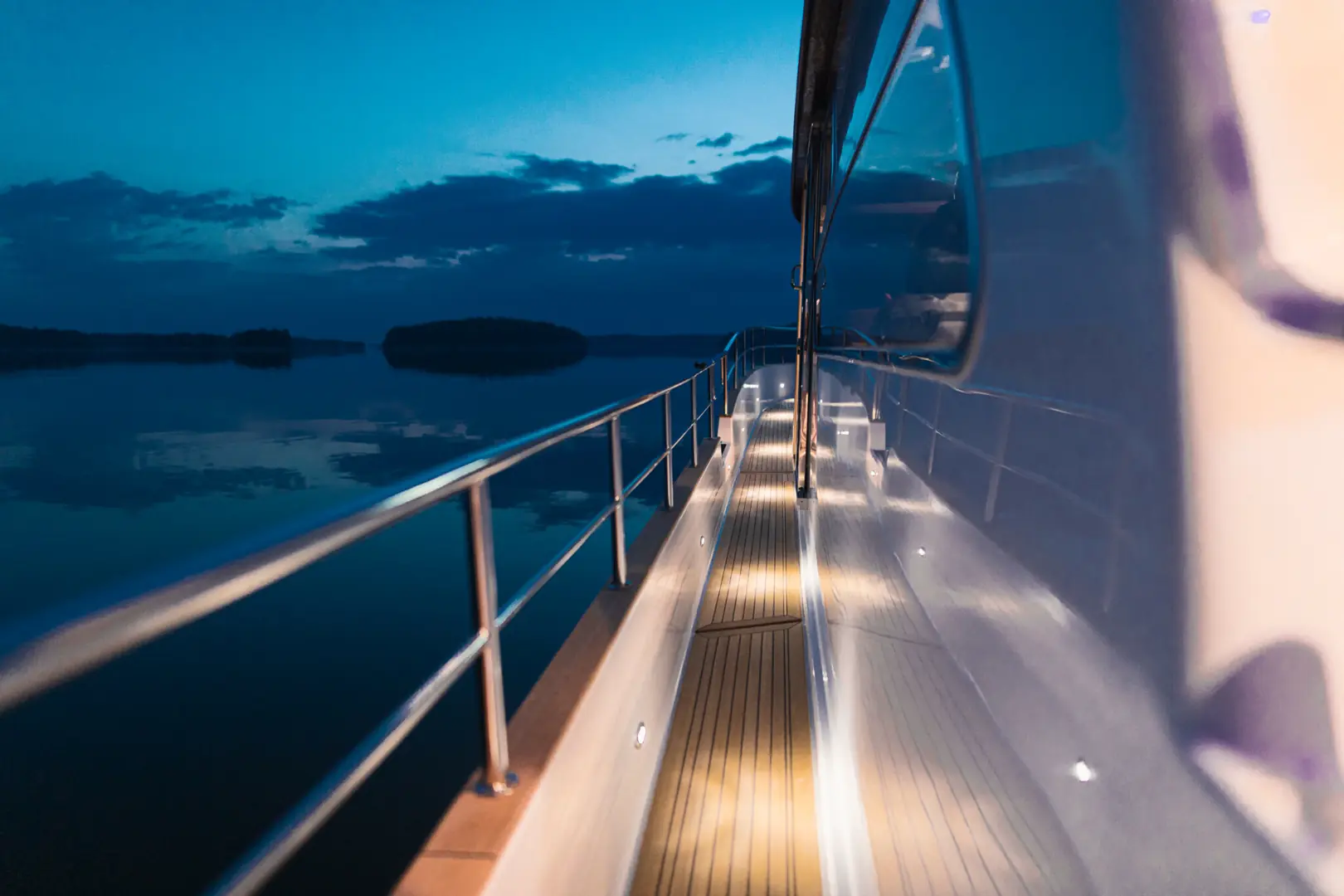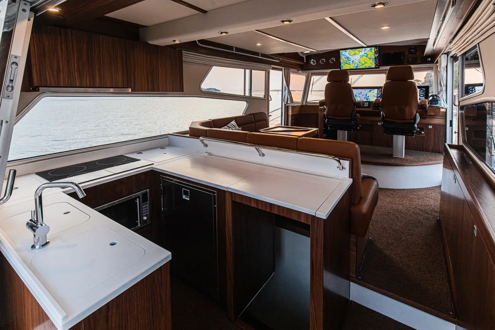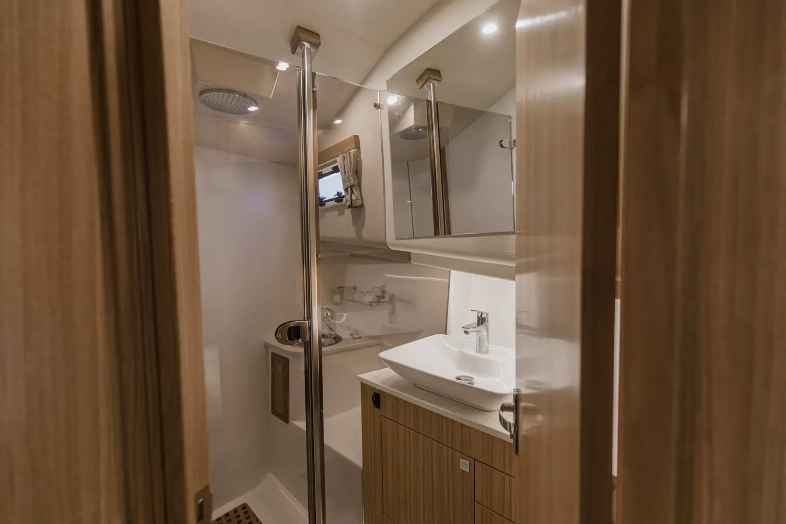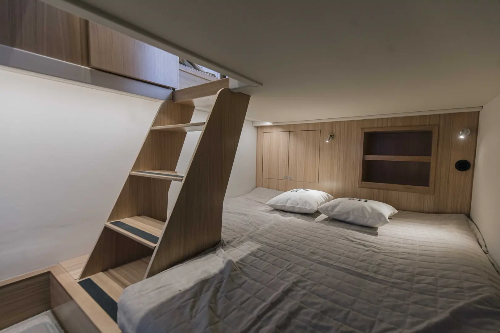 NORD STAR 49+ har alt – elegant design, luksuriøst interiør, god plass og fremragende sjøegenskaper. Materialer av høy kvalitet, moderne håndverk og førsteklasses detaljer gir opptil 15 passasjerer en minneverdig offshore-opplevelse. Denne romslige modellen er utstyrt med tre fullbreddekabiner og to toaletter.