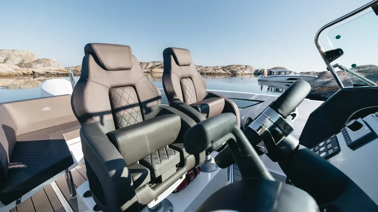Layouten til en skjærgårdsjeep gjør det sømløst å bevege seg fra akter til baug i båten, en nøye utformet konsoll sentrert i båten skjermer godt for vind og en overraskende romslig kabin åpner opp skjærgården for deg.