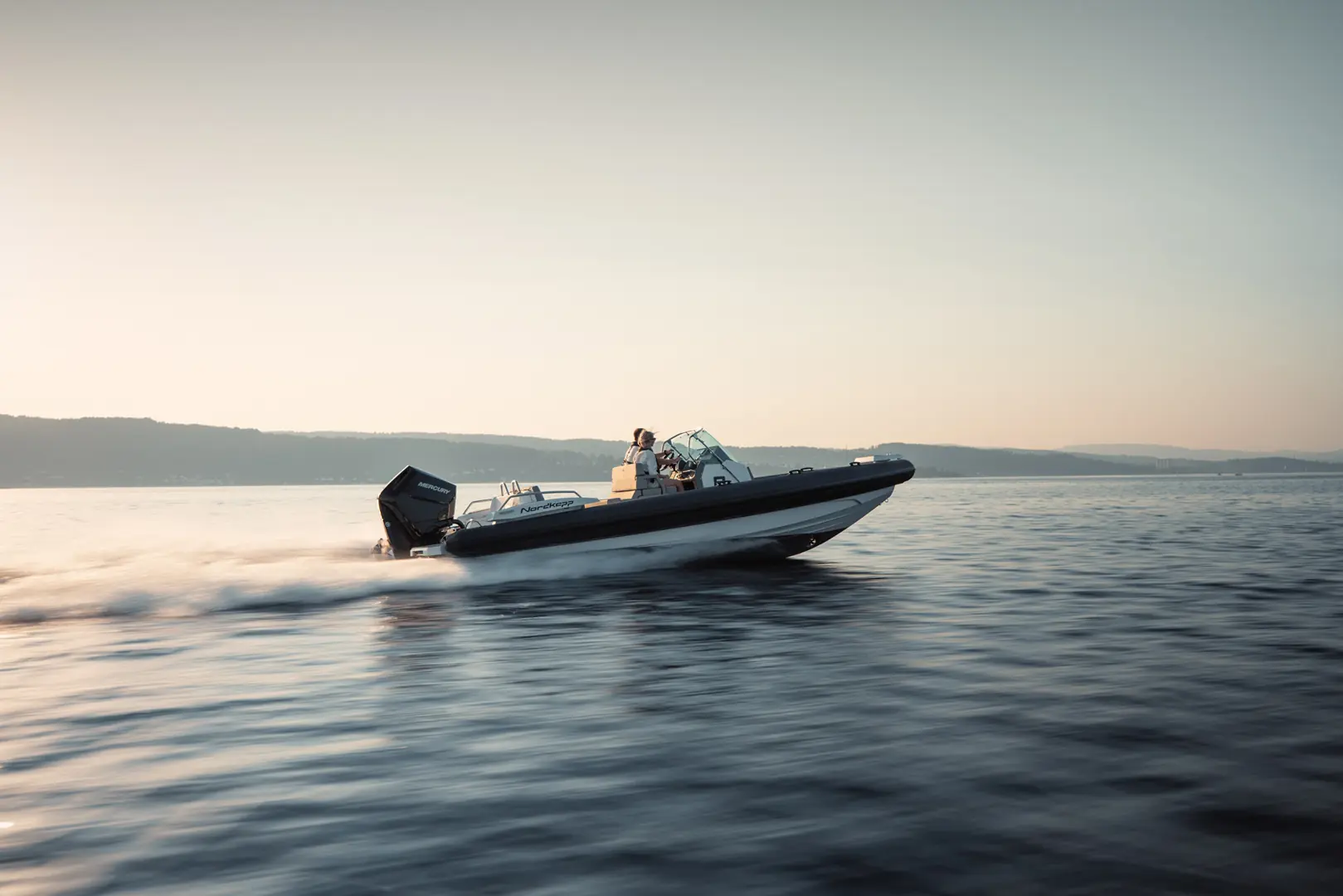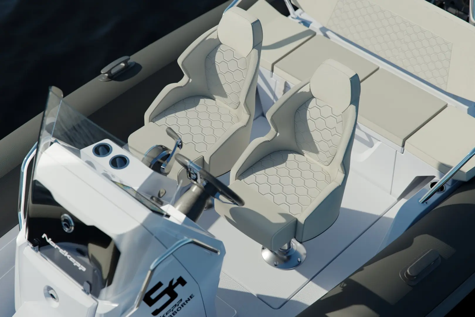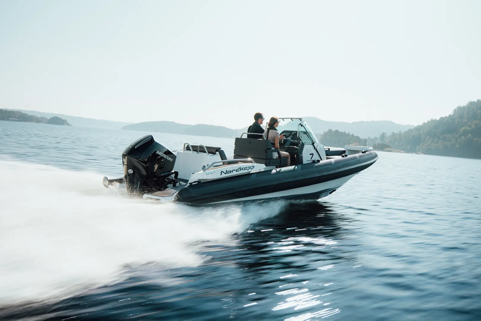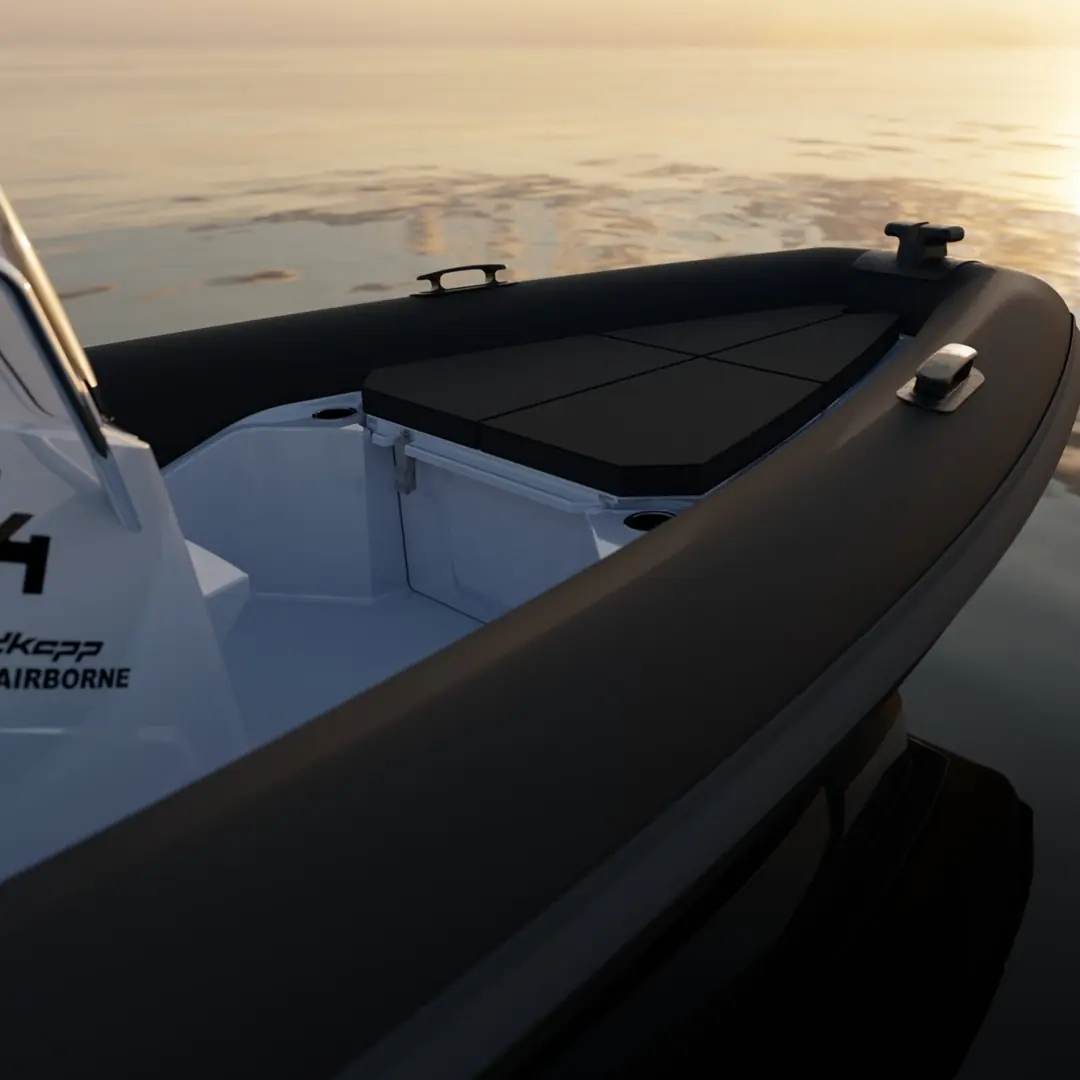 Airborne 5.4 er en kompakt RIB som ikke tar noen snarveier. Med et unikt baugdesign har vi forlenget vannlinjen, slik at båten oppfører seg som en større modell. Du kan tilpasse både for- og akterdekket helt etter dine ønsker. Velg mellom to ulike sitteløsninger ved konsollen og et bredt spekter av fargekombinasjonert for å gi båten din ditt personlige preg. Kort sagt: Du får den fulle Nordkapp-opplevelsen, i en liten og spennende pakke.